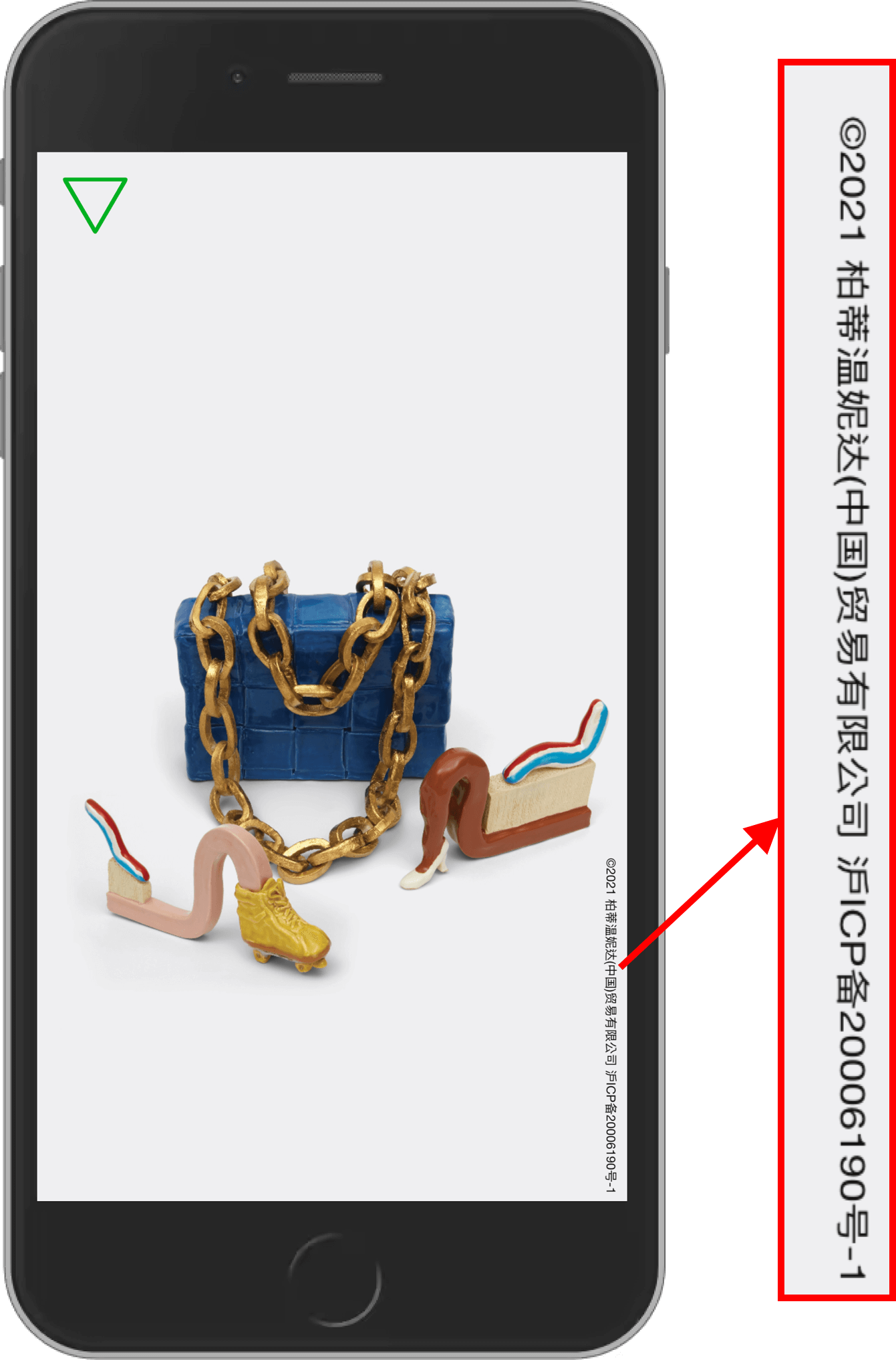 * Bottega Veneta China website with ICP number zoom-in highlighted in red