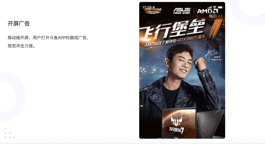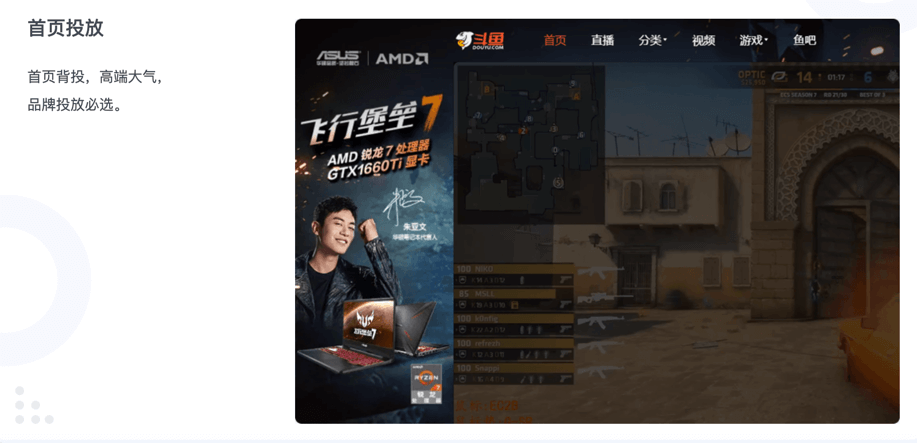 Douyu offers various types of advertising formats and collaboration, including but not limited to: