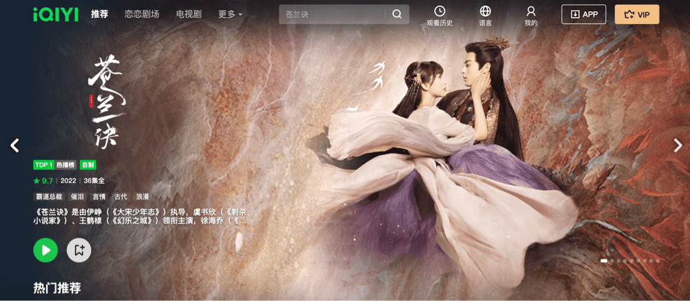 Iqiyi, also known as 爱奇艺 or Aiqiyi, is one of China’s largest online video sites with over 500 million monthly active users and has produced many highly successful shows.