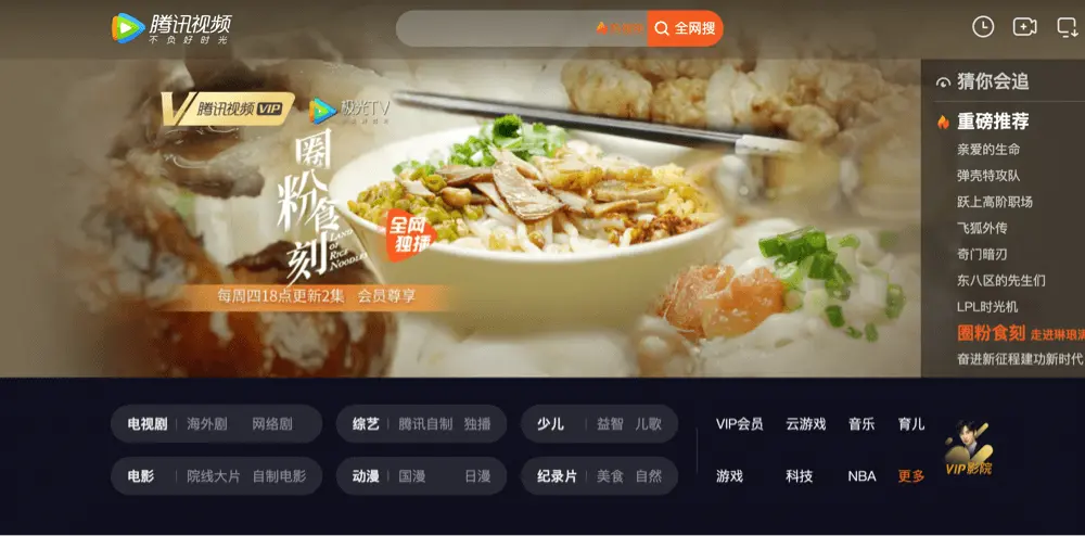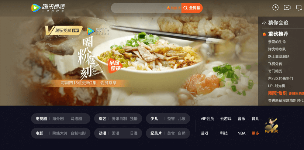 Tencent Video, also known as 腾讯视频, is one of the largest Chinese video streaming websites owned by Tencent.