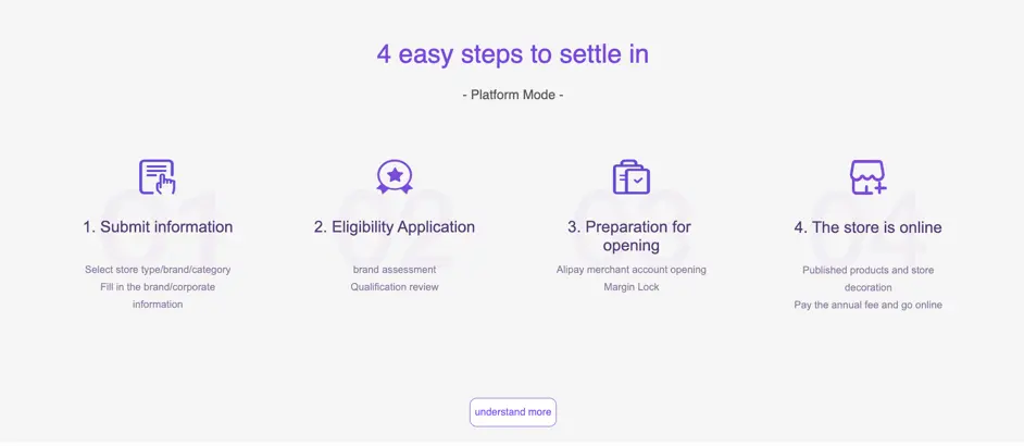 Merchants can choose their team or a third-party service provider team to operate and manage their Tmall Global Store.