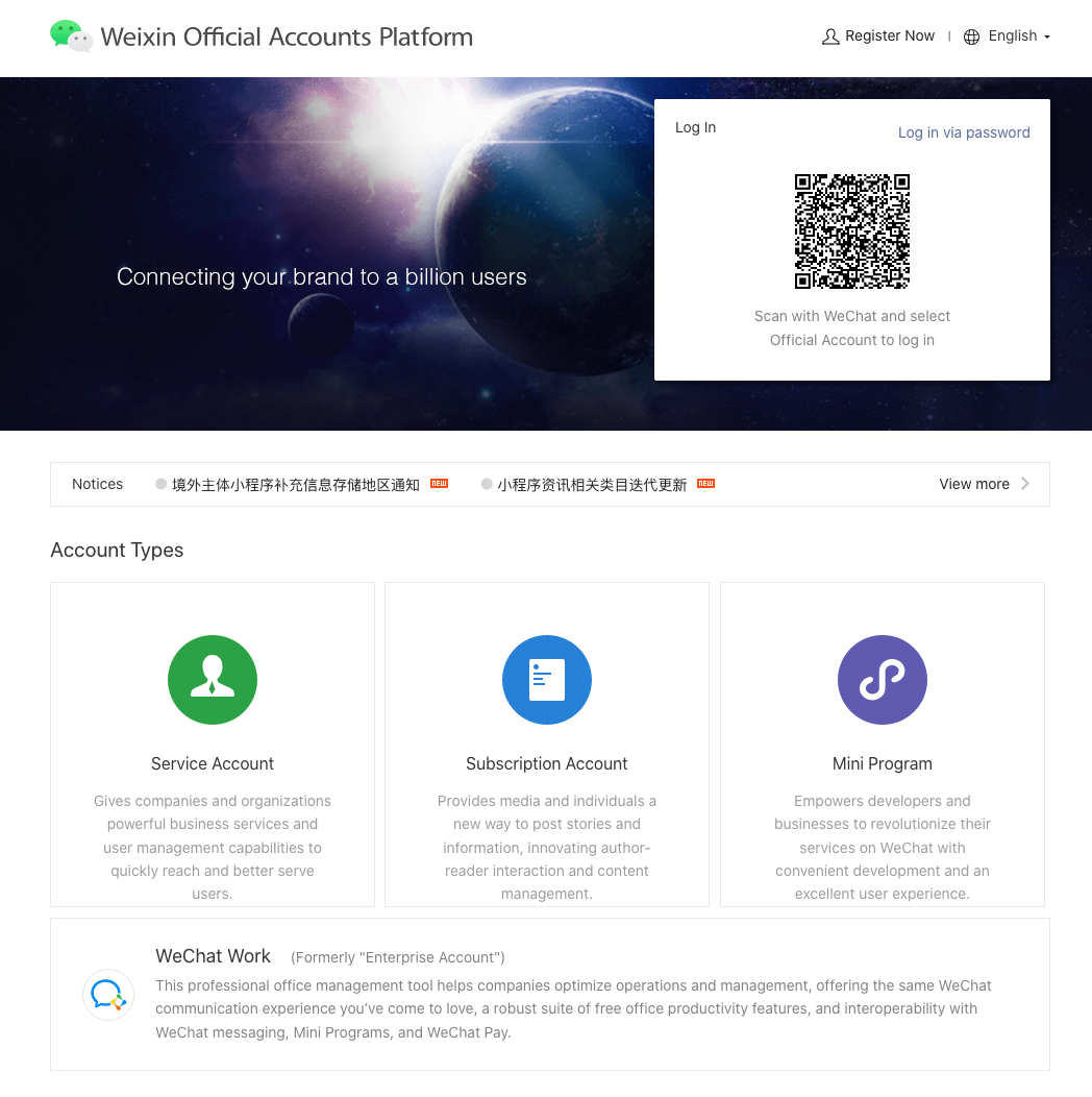 Businesses can start by registering a WeChat official account to use additional brand-building and lead-generation features.