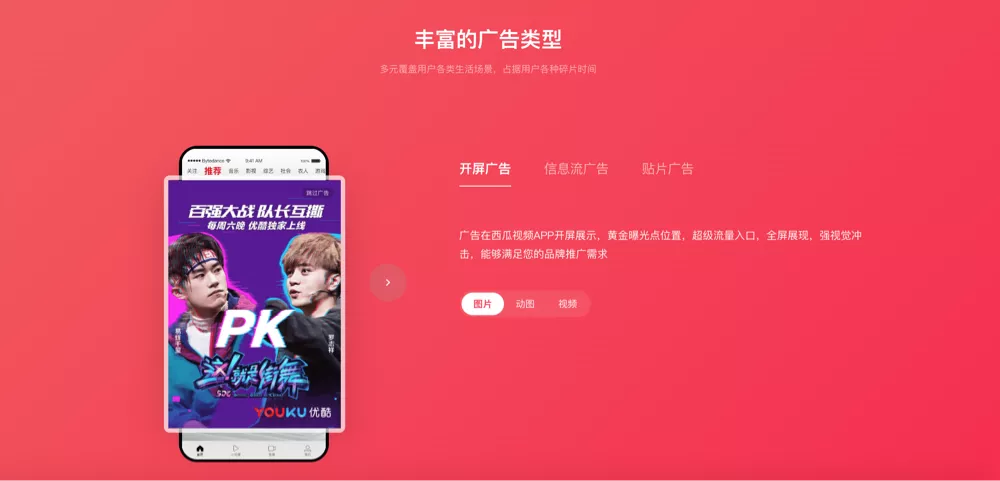 Like most video-streaming platforms, Xigua Video provides different advertisement formats, such as bumper and out-stream ads. Suppose you want to advertise your business on Xigua. In that case, you can sign up on ByteDance’s ad platform Ocean Engine, which is also used by other social products by ByteDance, such as Douyin and TikTok.