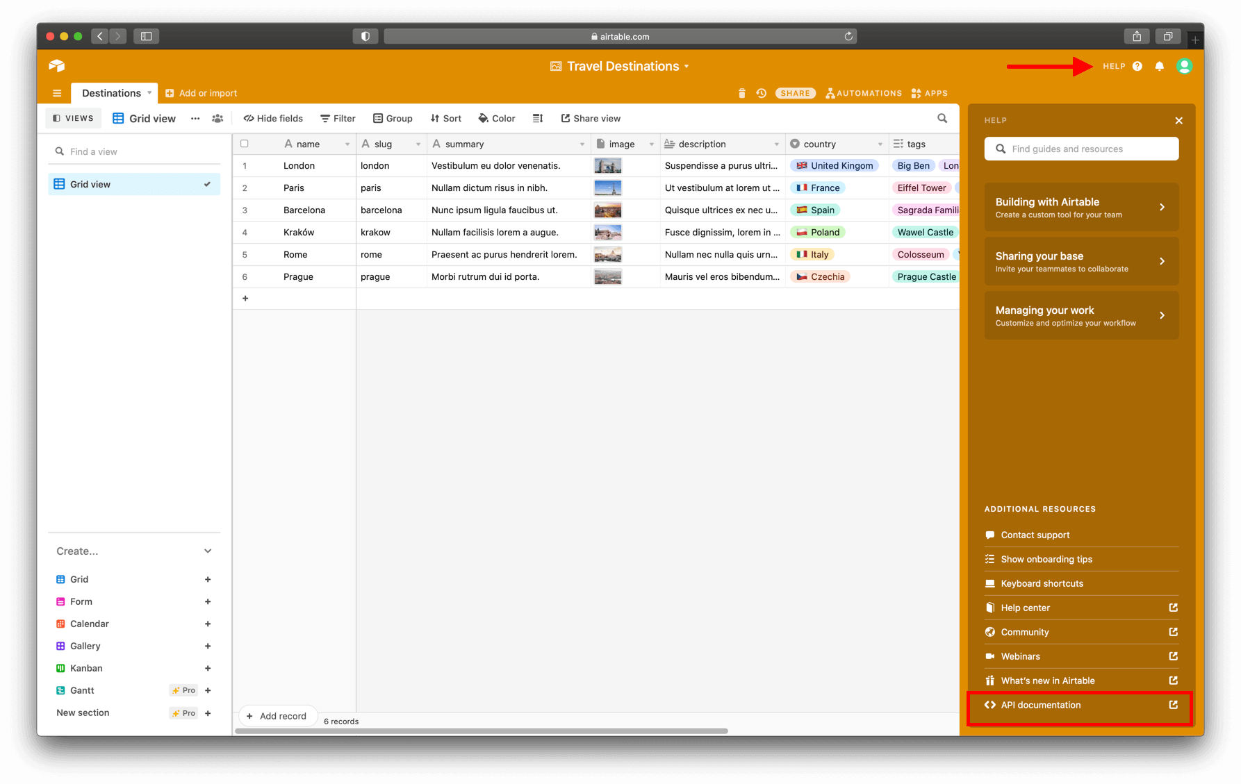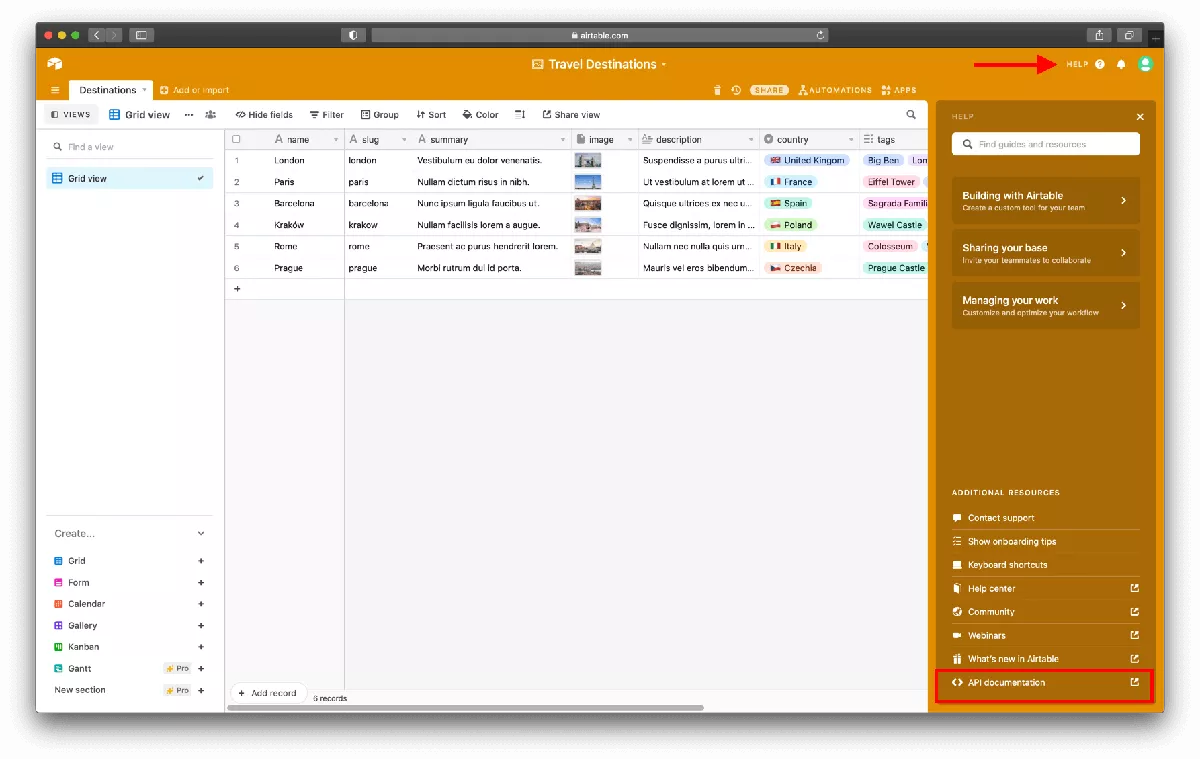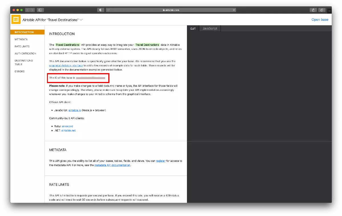 | AIRTABLE_BASE_ID | You can find it on your base -> “Help” -> “API documnetation” |