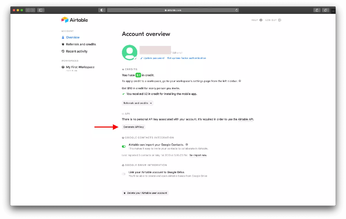 | AIRTABLE_API_KEY | You can find it on Airtable Dashboard -> “Account” -> API |