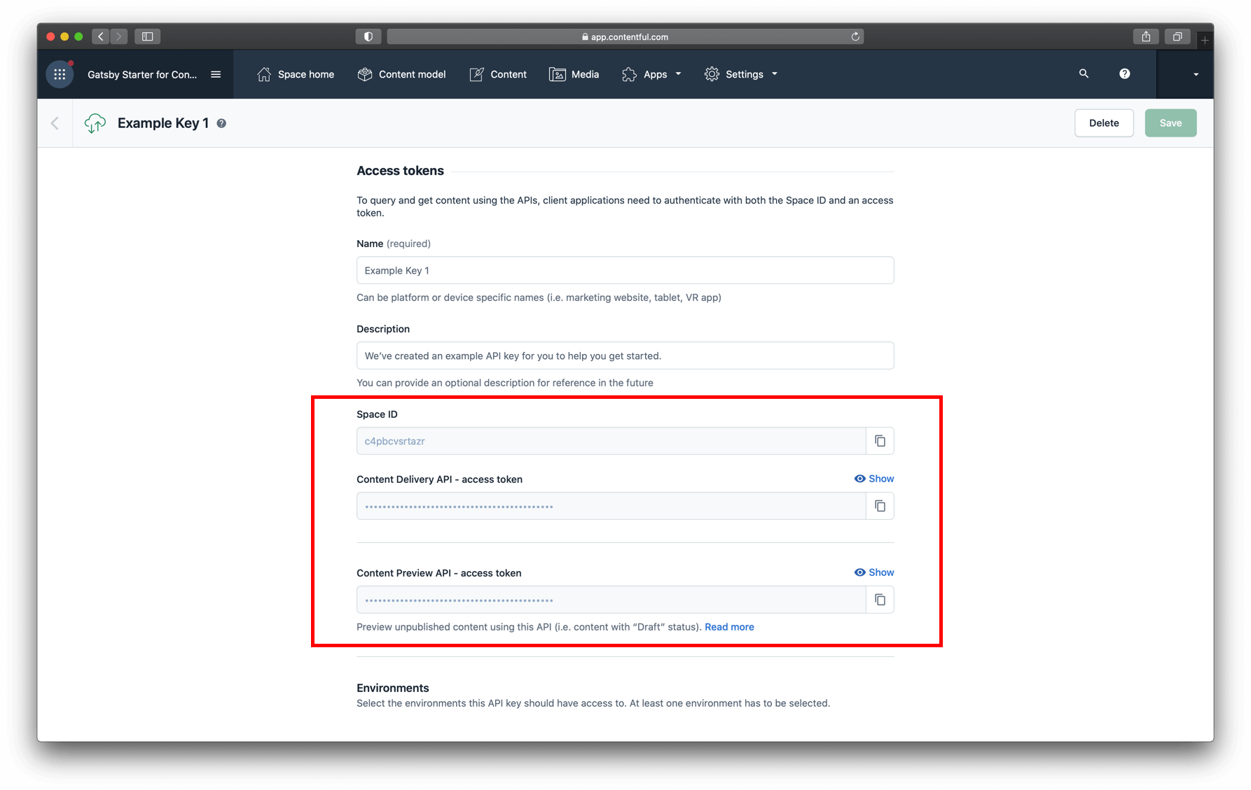 | CONTENTFUL_ACCESS_TOKEN | You can find it on Contentful Dashboard -> “Settings” -> API Keys -> “Content Delivery API - access token” |
