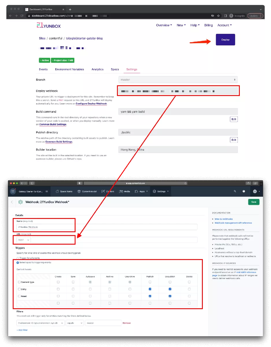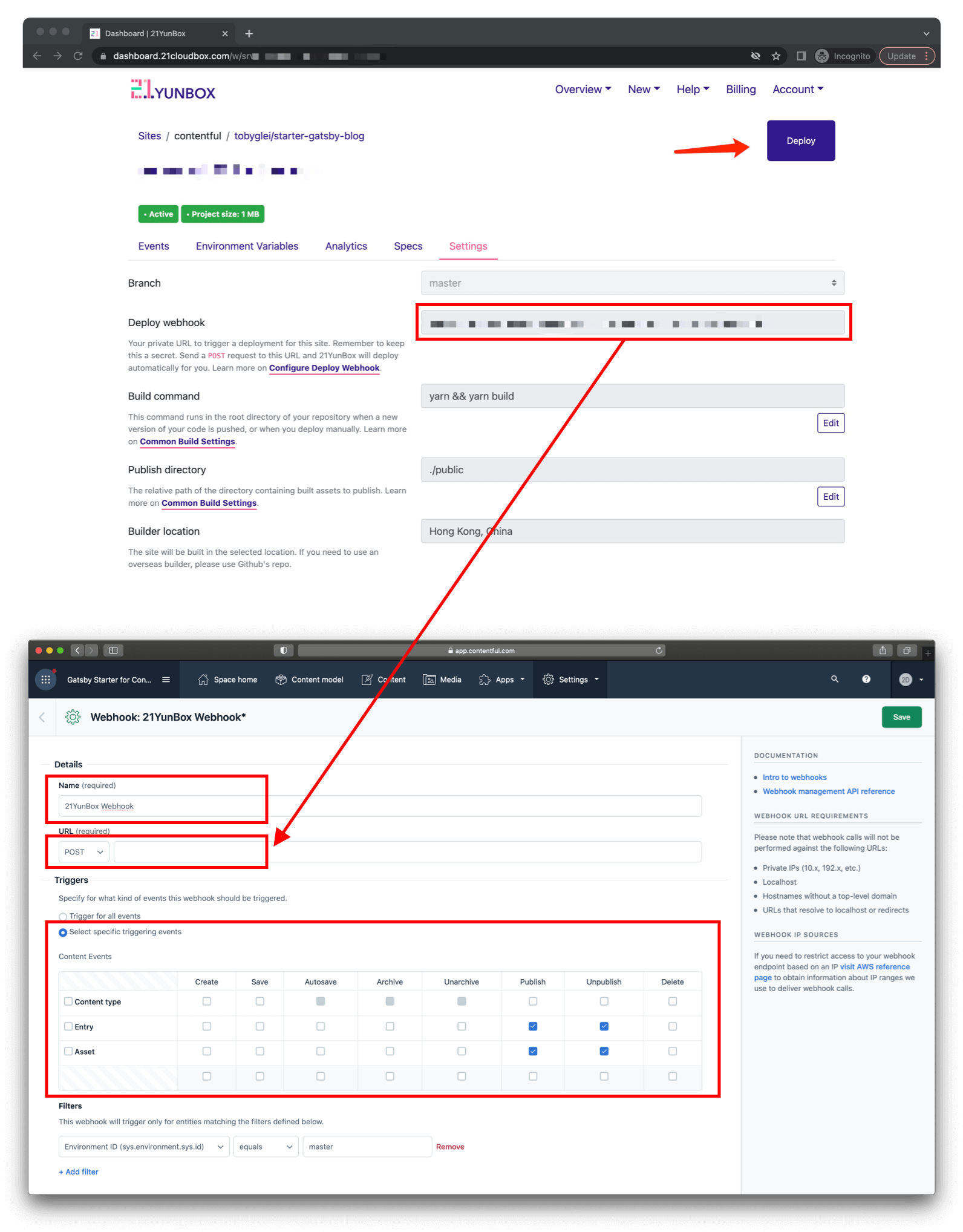That’s it! Now when new content publishes on Contentful, 21YunBox will automatically build and deploy the changes for you.