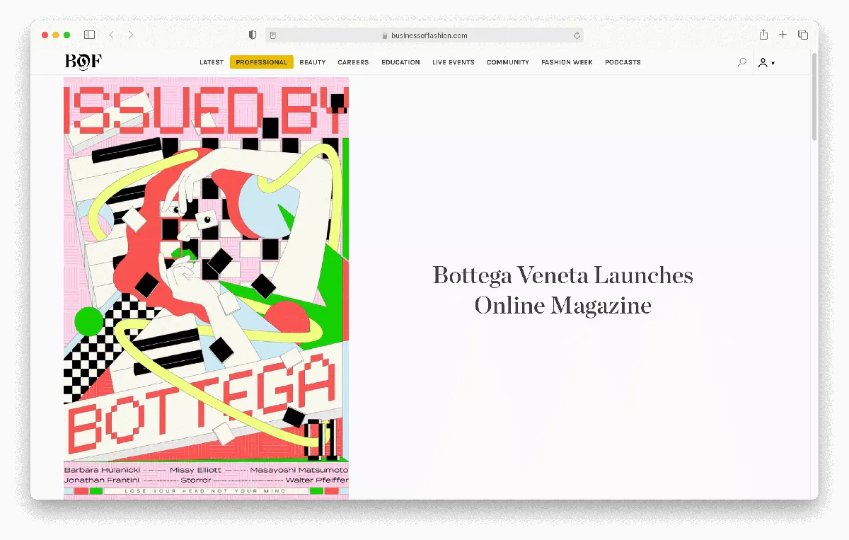 News Article on Bottega Veneta's Announcement