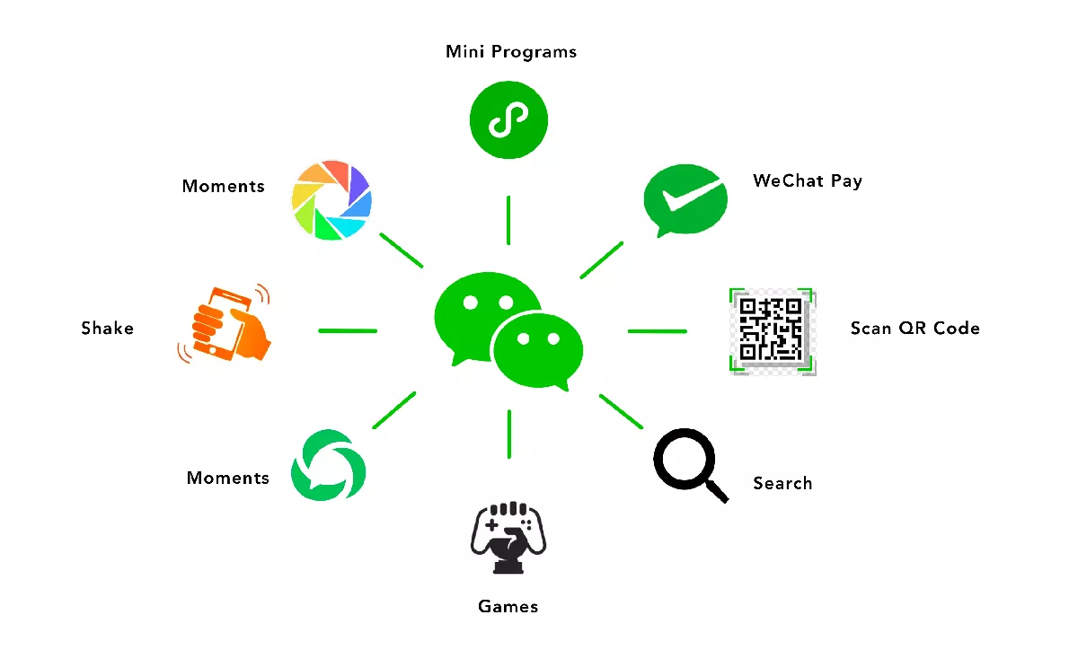 E-commerce capabilities: WeChat is not only a social media platform but also a full-fledged e-commerce platform with features like WeChat Pay and WeChat Store, which allows businesses to conduct transactions and sell products directly through the app.