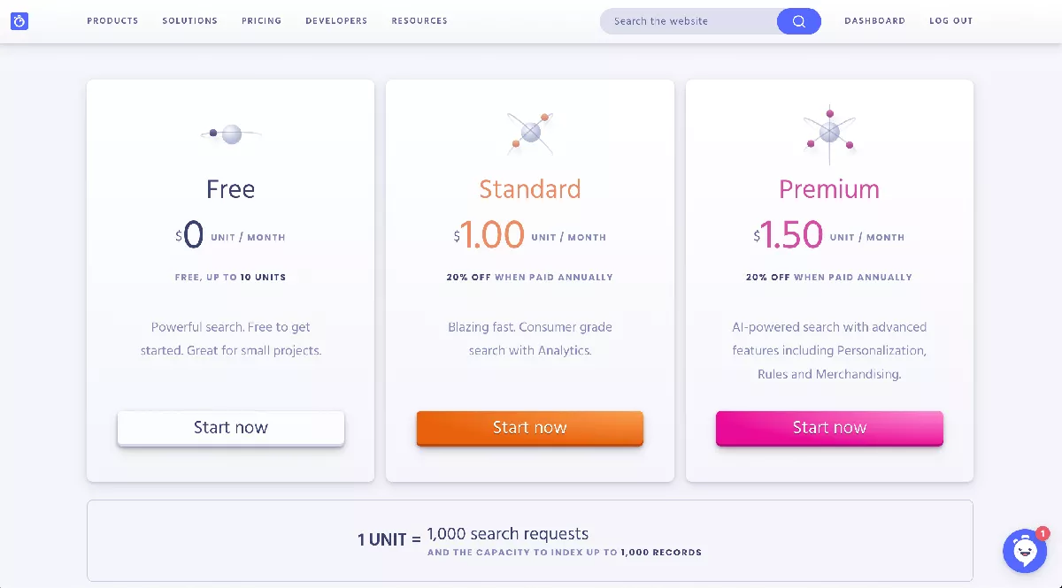 In terms of price, Algolia does offers a free plan but if the monthly search volume exceeds 10,000, then it will be $1 USD / 1,000 searches.