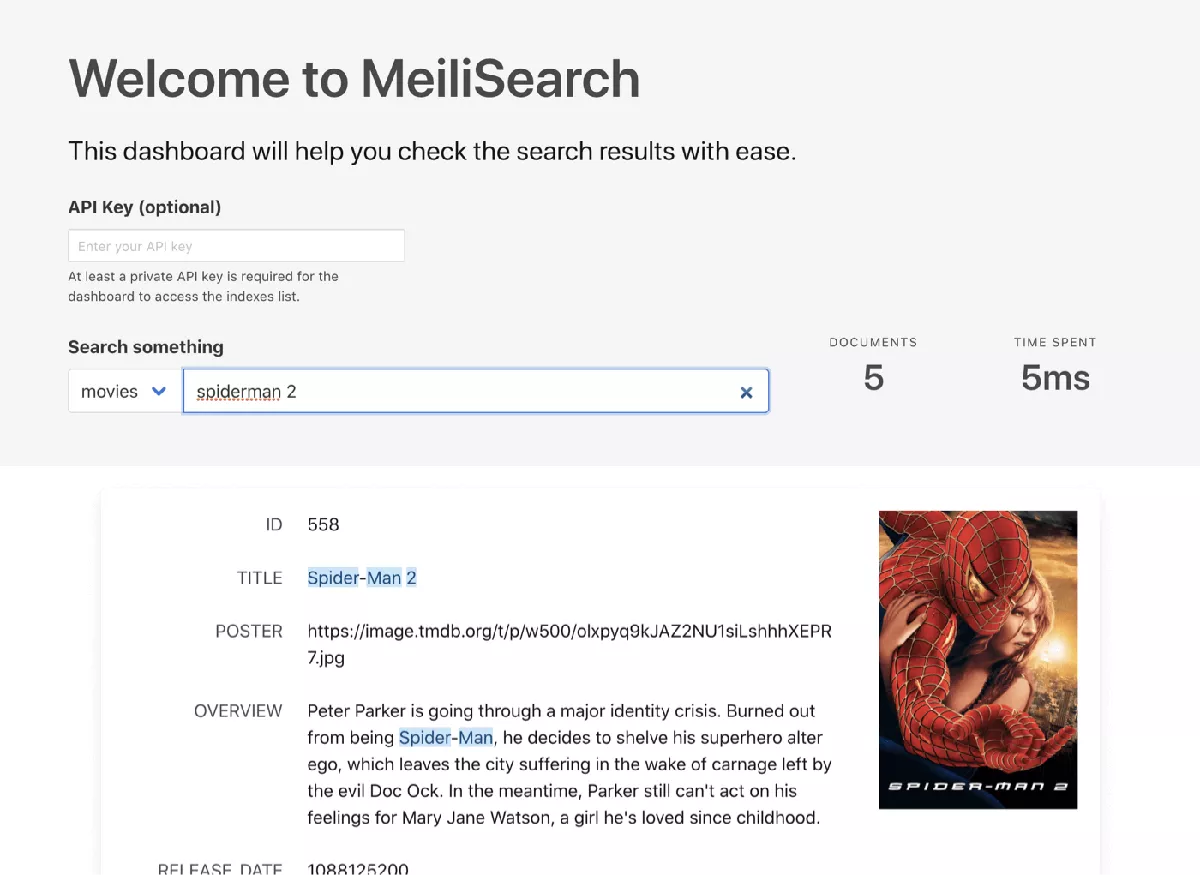 For more information about MeiliSearch, please refer to MeiliSearch official document