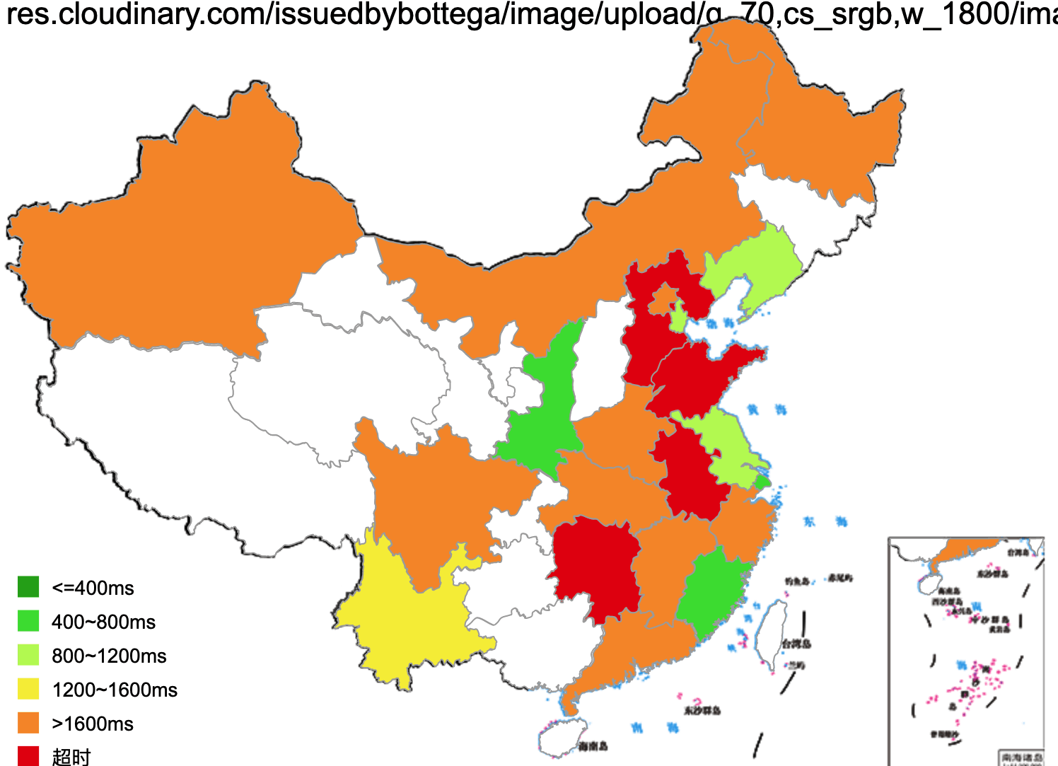 As you can tell, the access speed from Cloudinary managed data are very slow and in some regions unaccessible. These slow speeds can be attributed to Cloudinary’s lack of content delivery network (CDN) nodes inside of China.