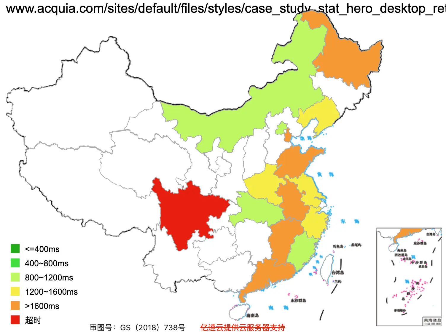 From our speed test, people in China have difficulty viewing the images on the Acquia’s website. (that’s what the below figure means, red means unable to display images).