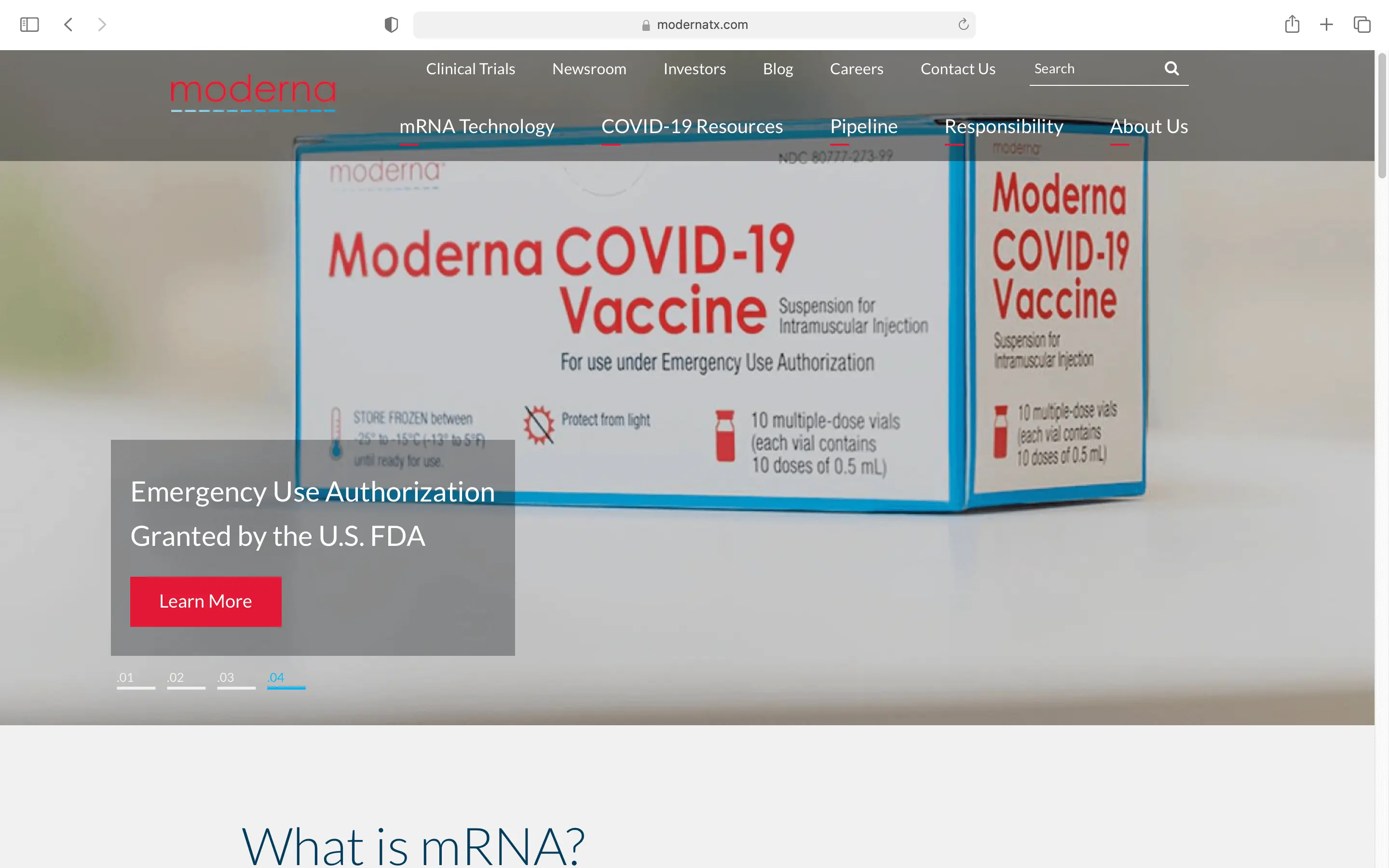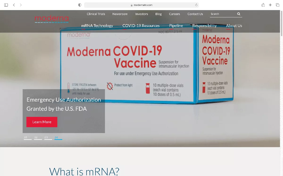 Moderna (MRNA), is a US pharmaceutical and biotechnology company based in Cambridge, Massachusetts. Moderna is well known for bringing one of the first COVID-19 vaccines to the market.