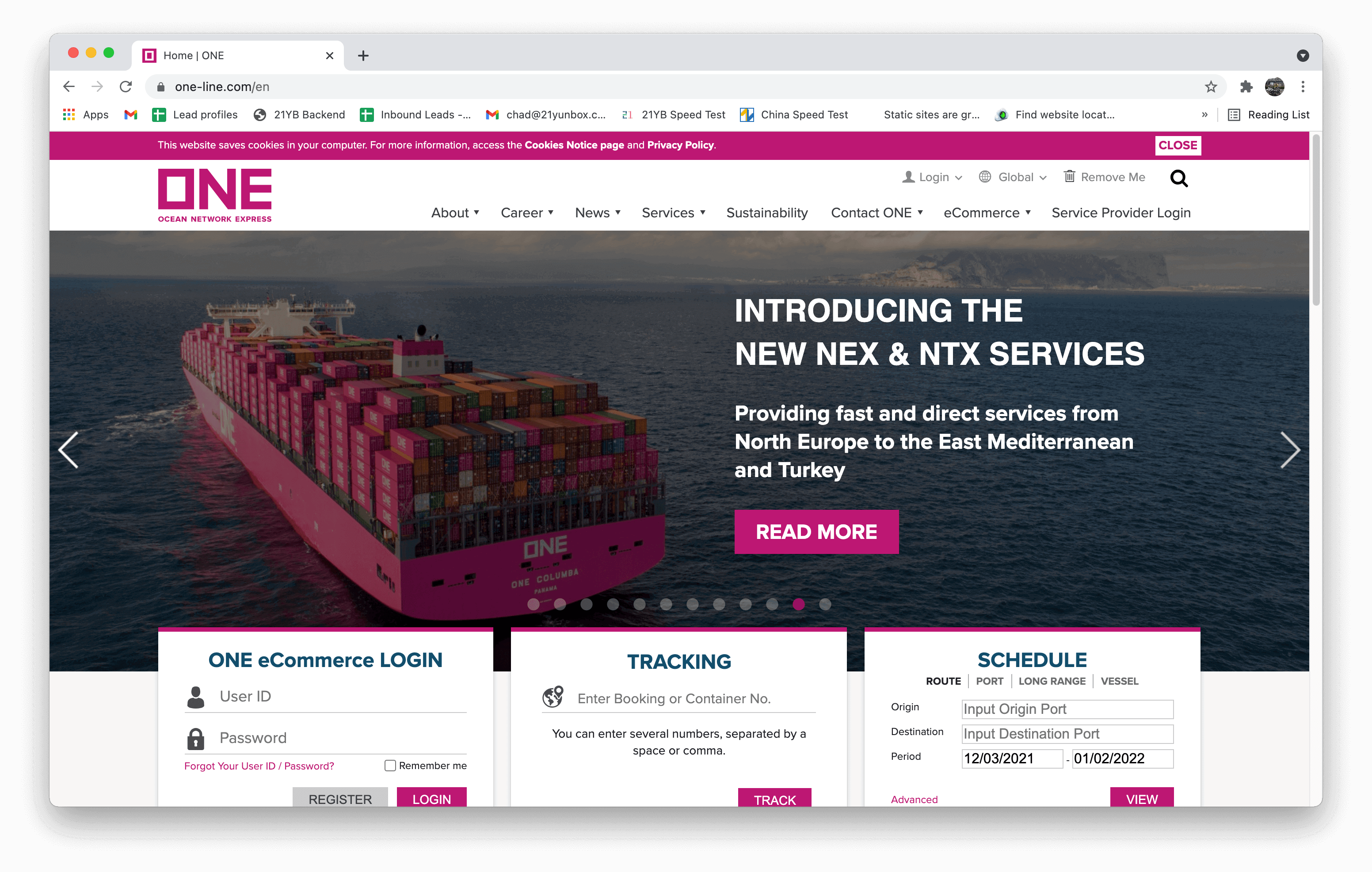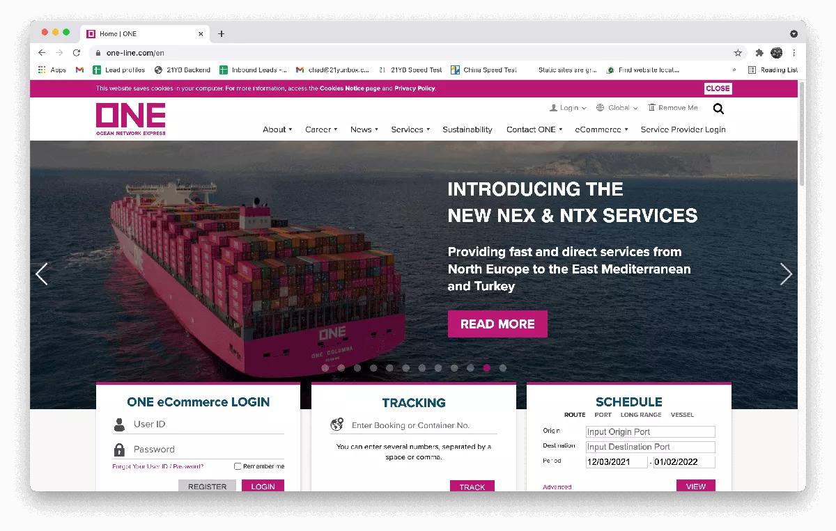 Ocean Network Express Holdings, Ltd. (ONE) is a Japanese container transportation and shipping company that ships goods world wide.
