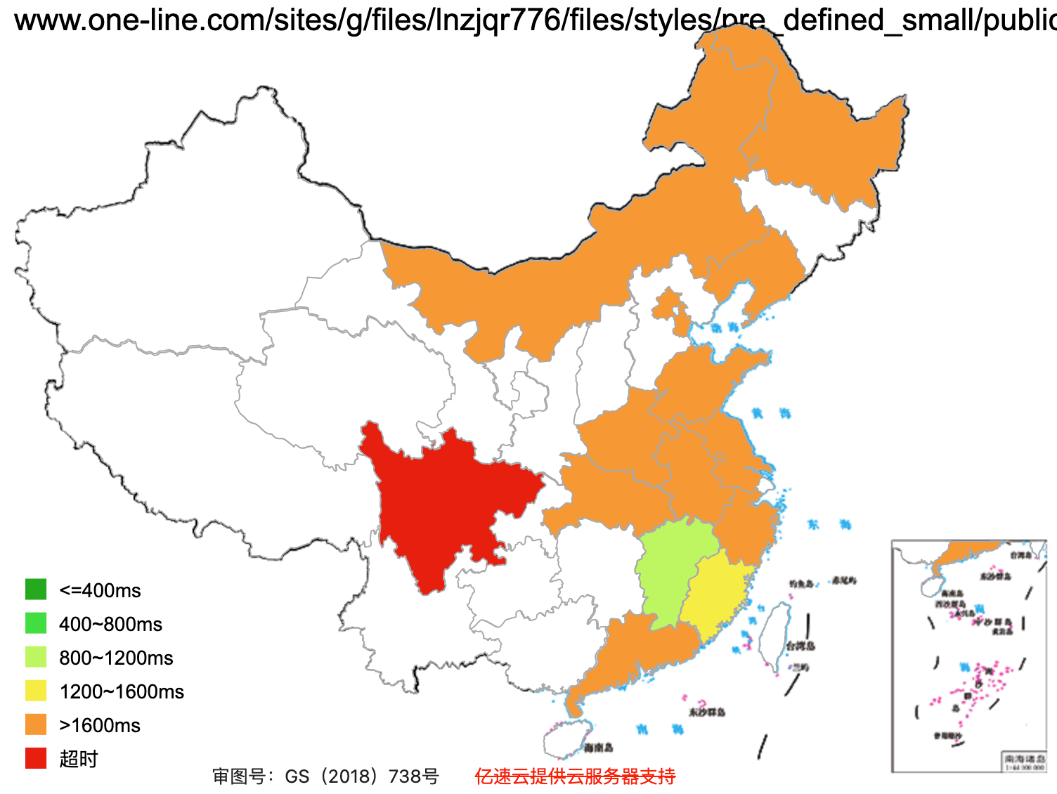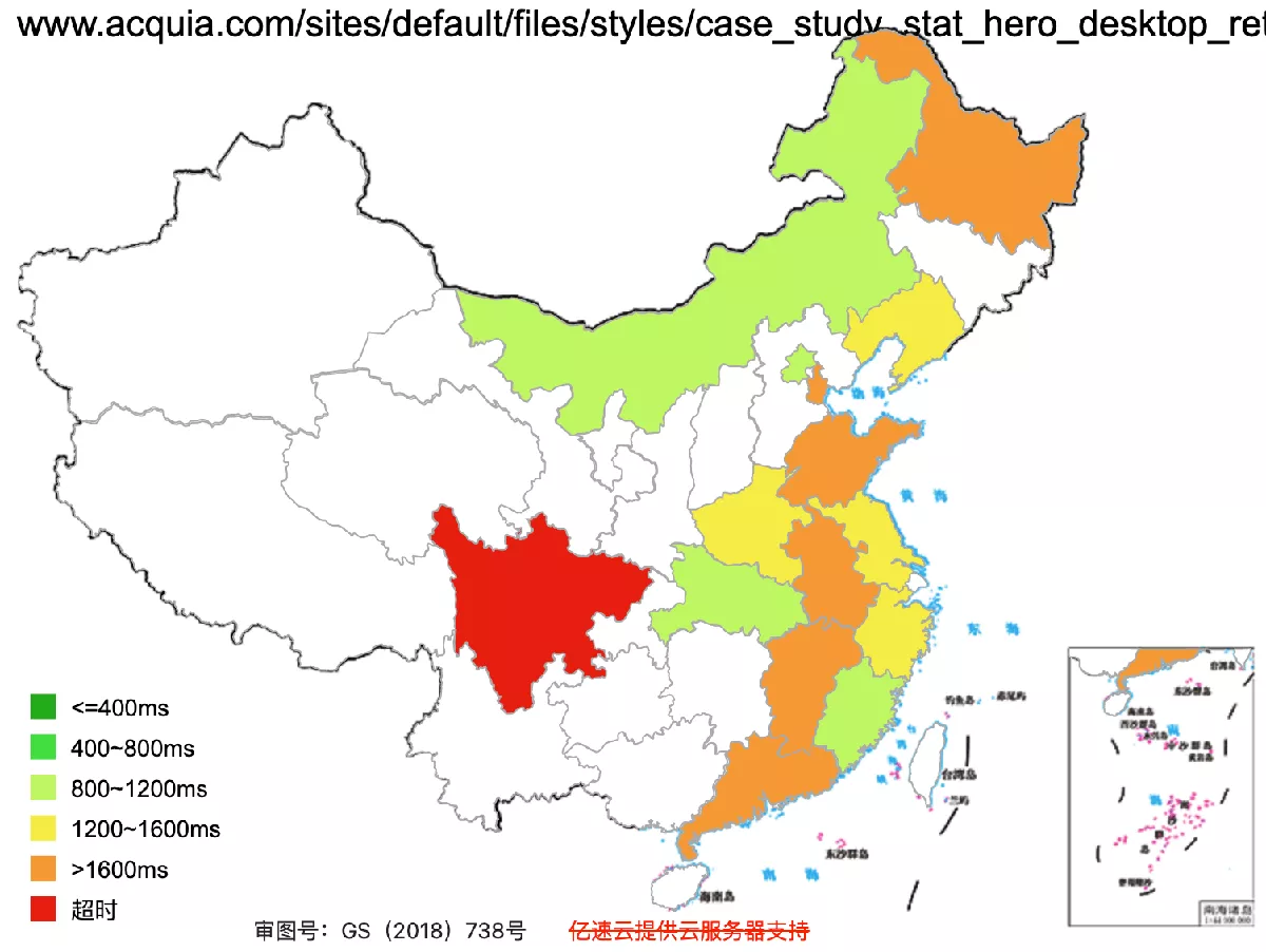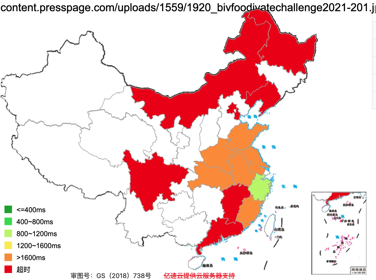 This figure basically shows how fast the website loads across Mainland China (green = fast, red=slow)