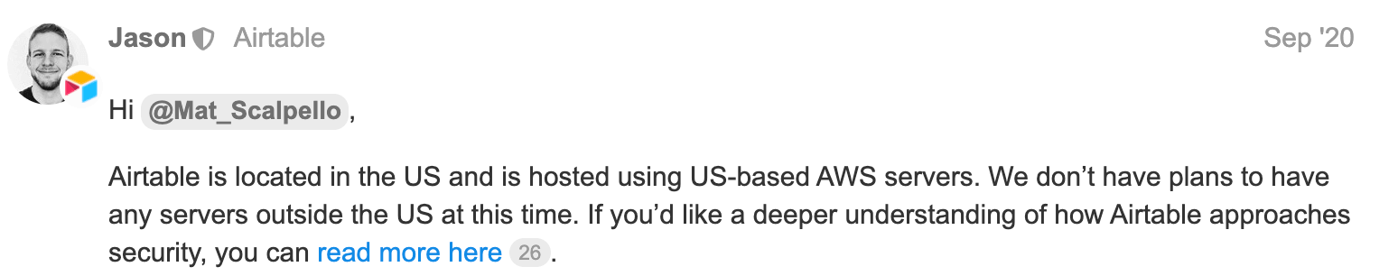 Simply put, any user information collected in China should stay in servers or databases in China. And since Airtable has no database or servers in China, then if you send users’ data out to overseas servers, it is not allowed, or in fact, it violates the laws already.