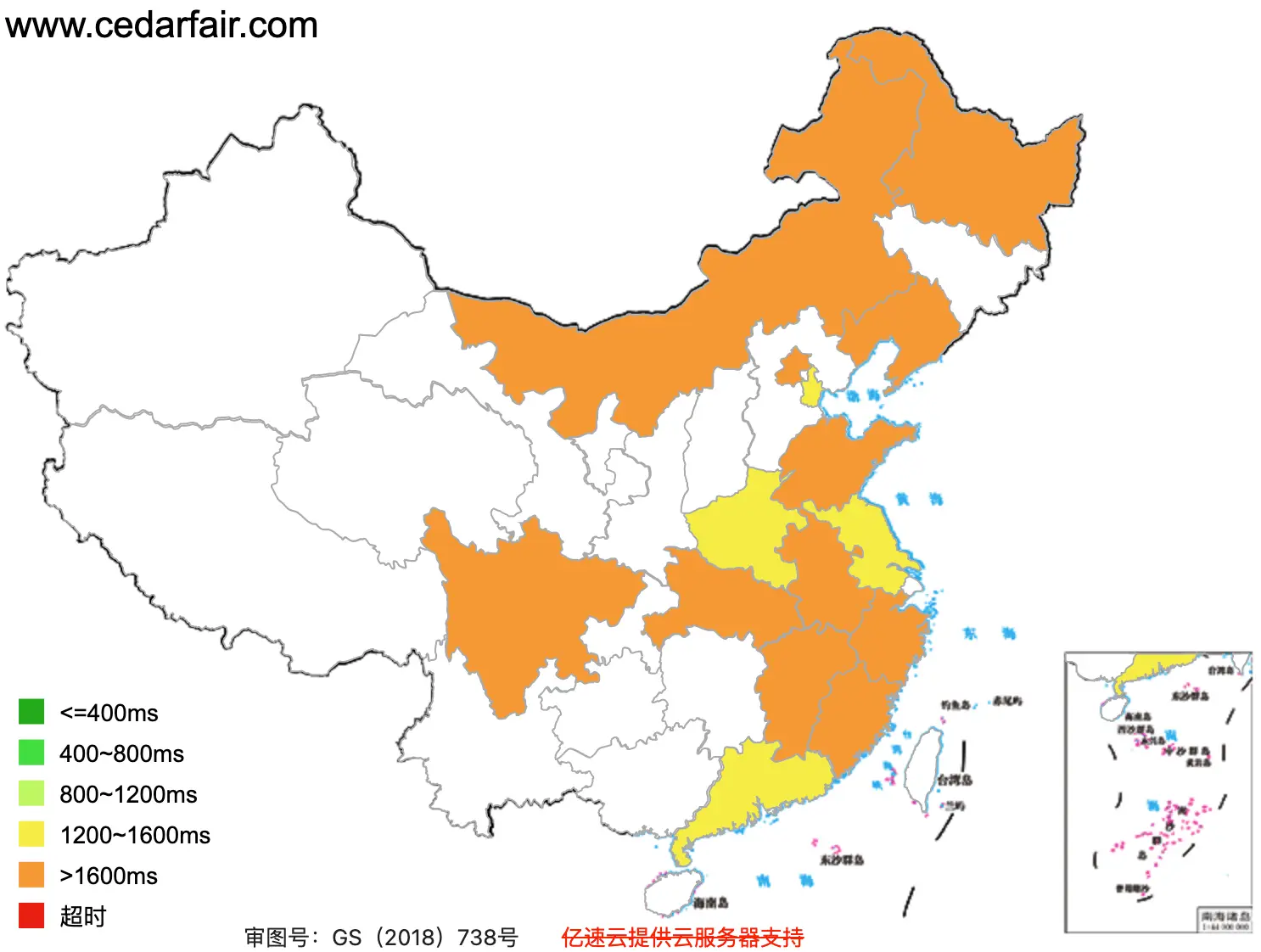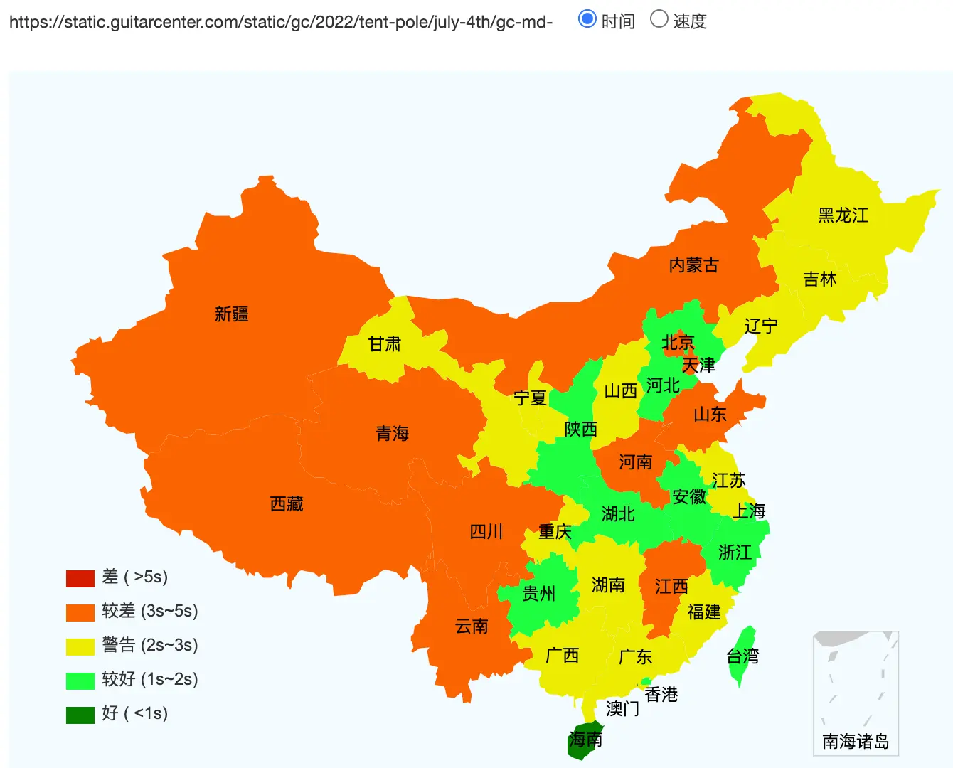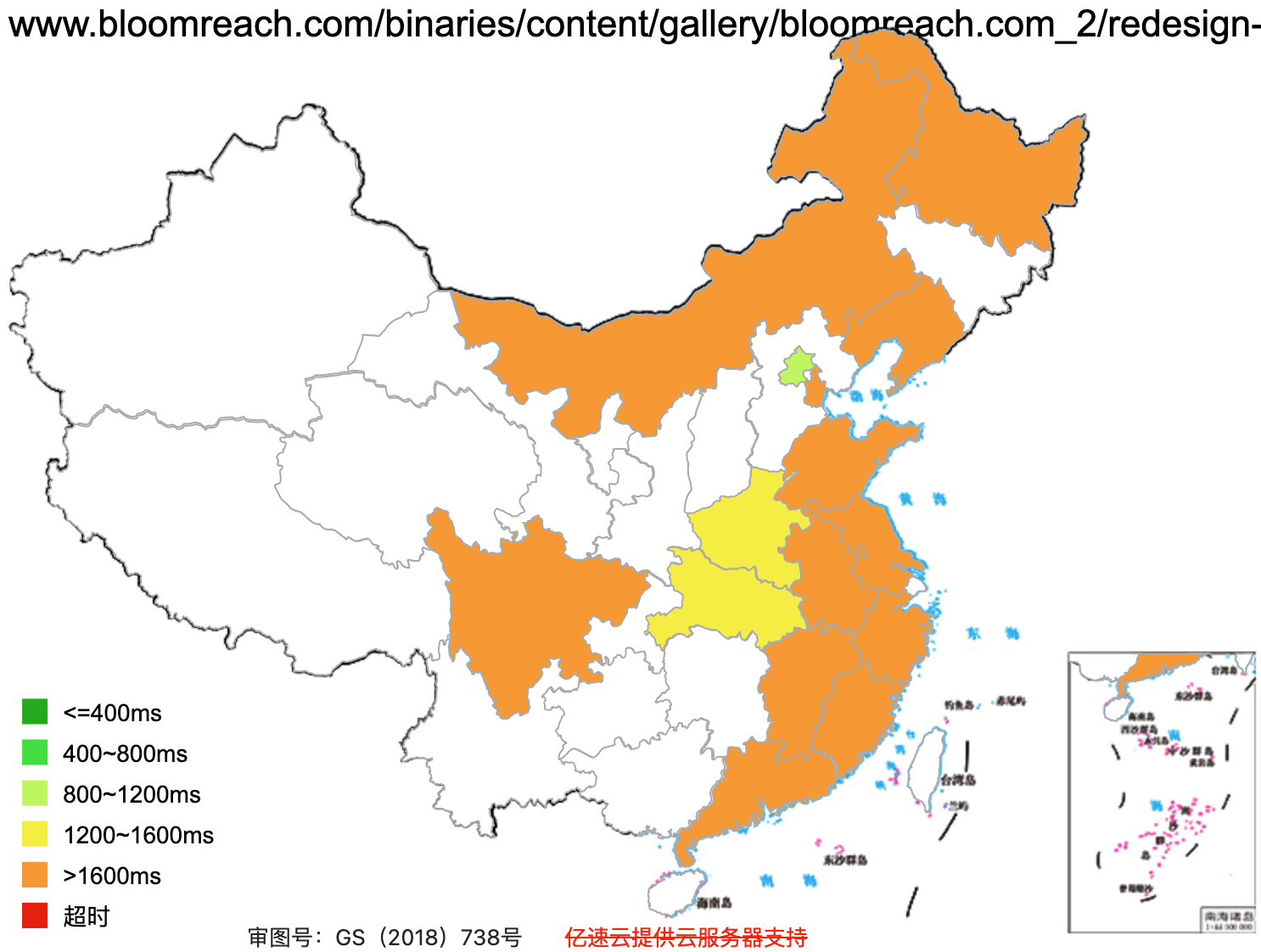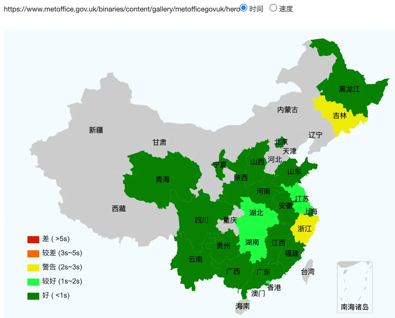 This figure basically shows how fast the website loads across Mainland China (green = fast, red =slow)