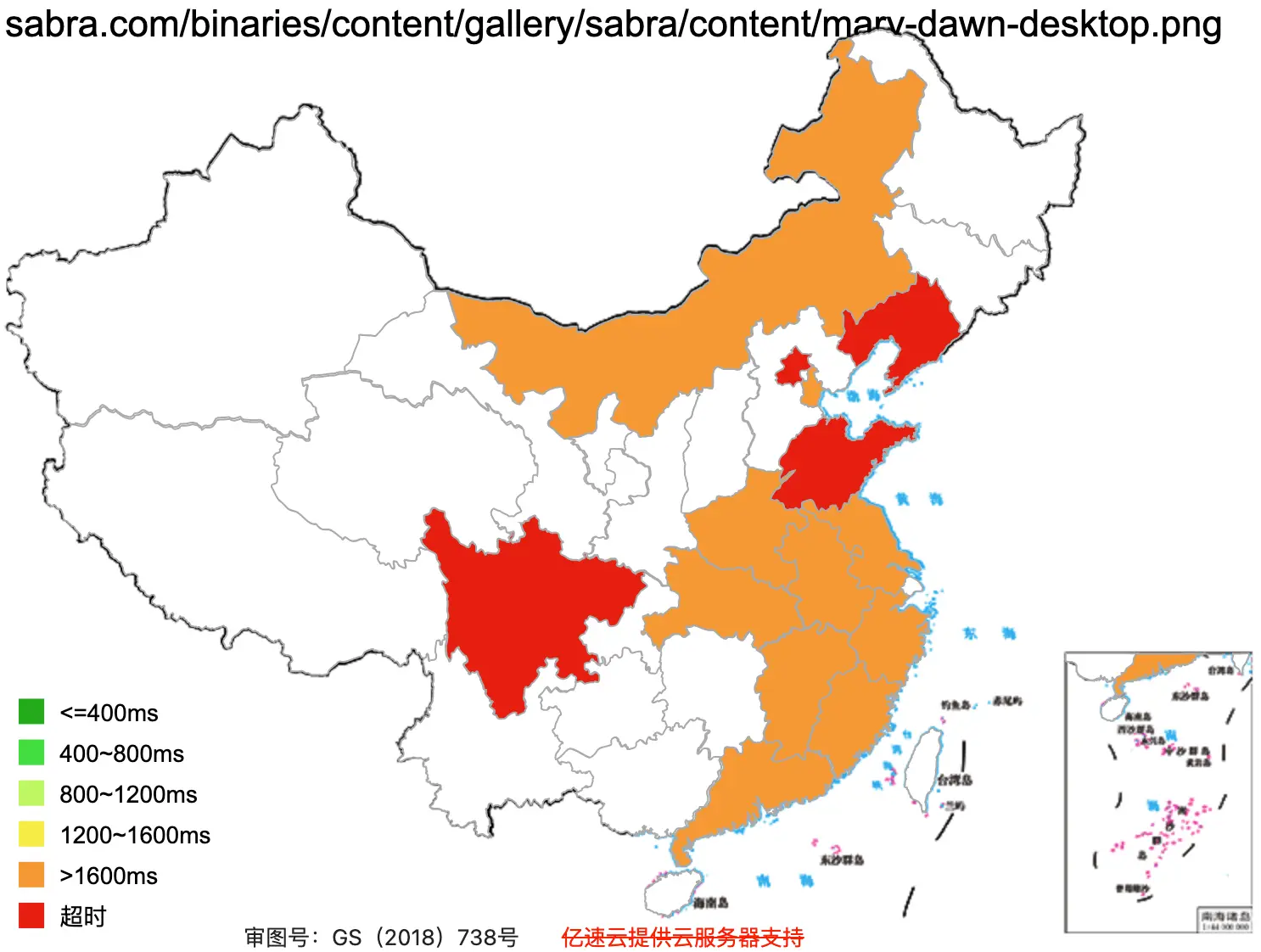 From our speed test, people in China will have difficulty viewing the images and opening Sabra’ website (that’s what the below figure means, red means unable to display images).