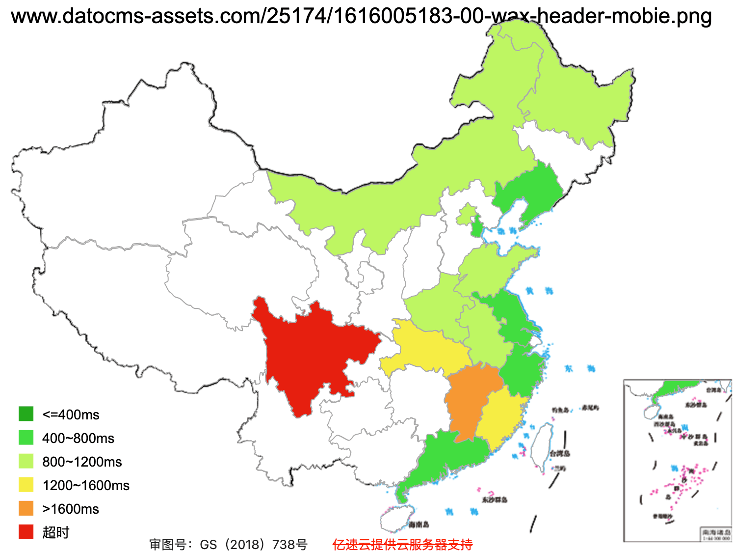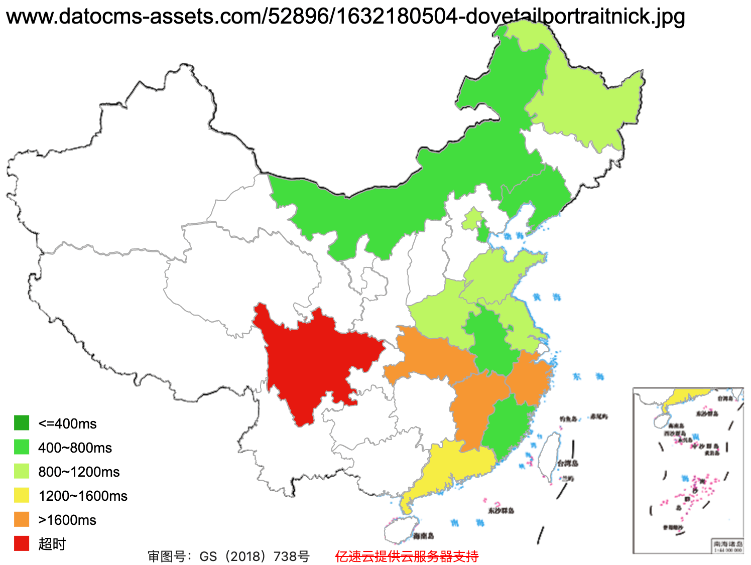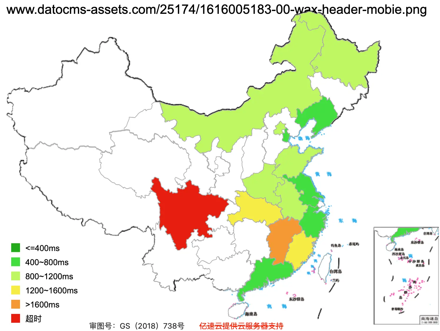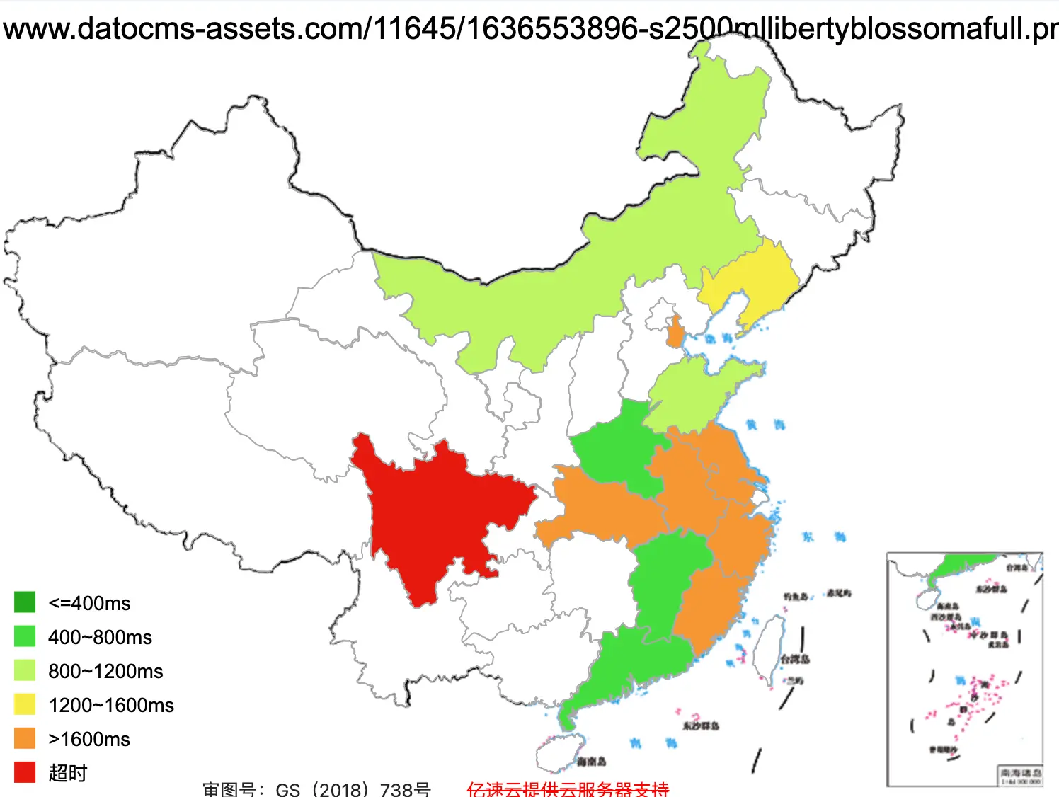 This figure basically shows how fast the website loads across Mainland China (green = fast 👍, red/orange/yellow/grey = slow 👎)