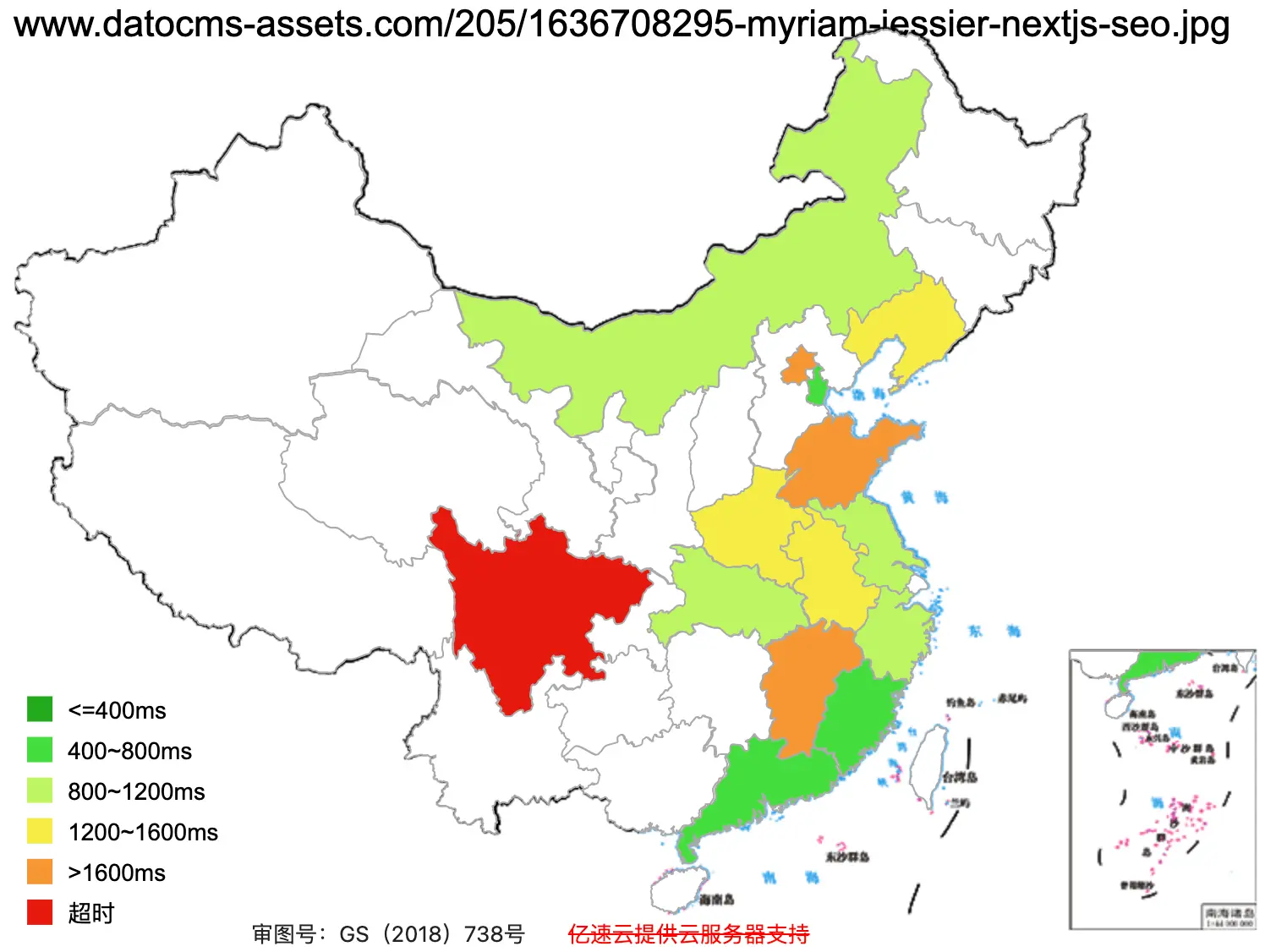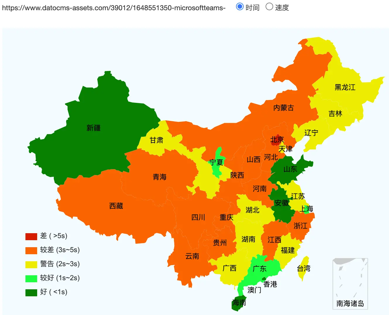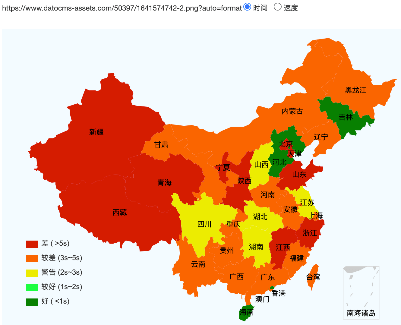 From our speed test, people in China have difficulty viewing the images on the DatoCMS’s website. (that’s what the below figure means, red/orange/yellow means unable to display images).
