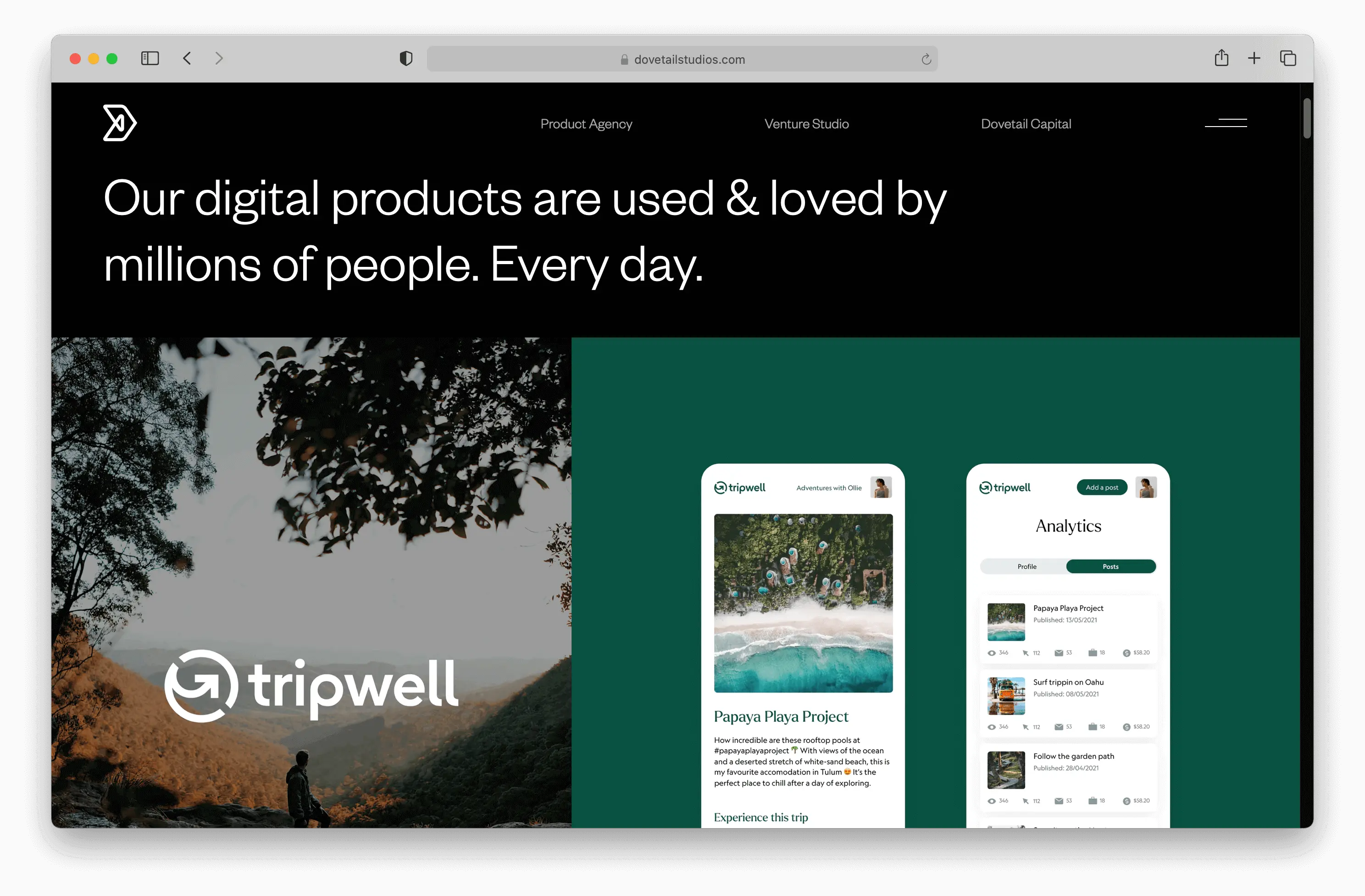 Dovetail is an international digital product agency, venture studio and VC firm dedicated to co-creating and investing in the world’s most promising companies.