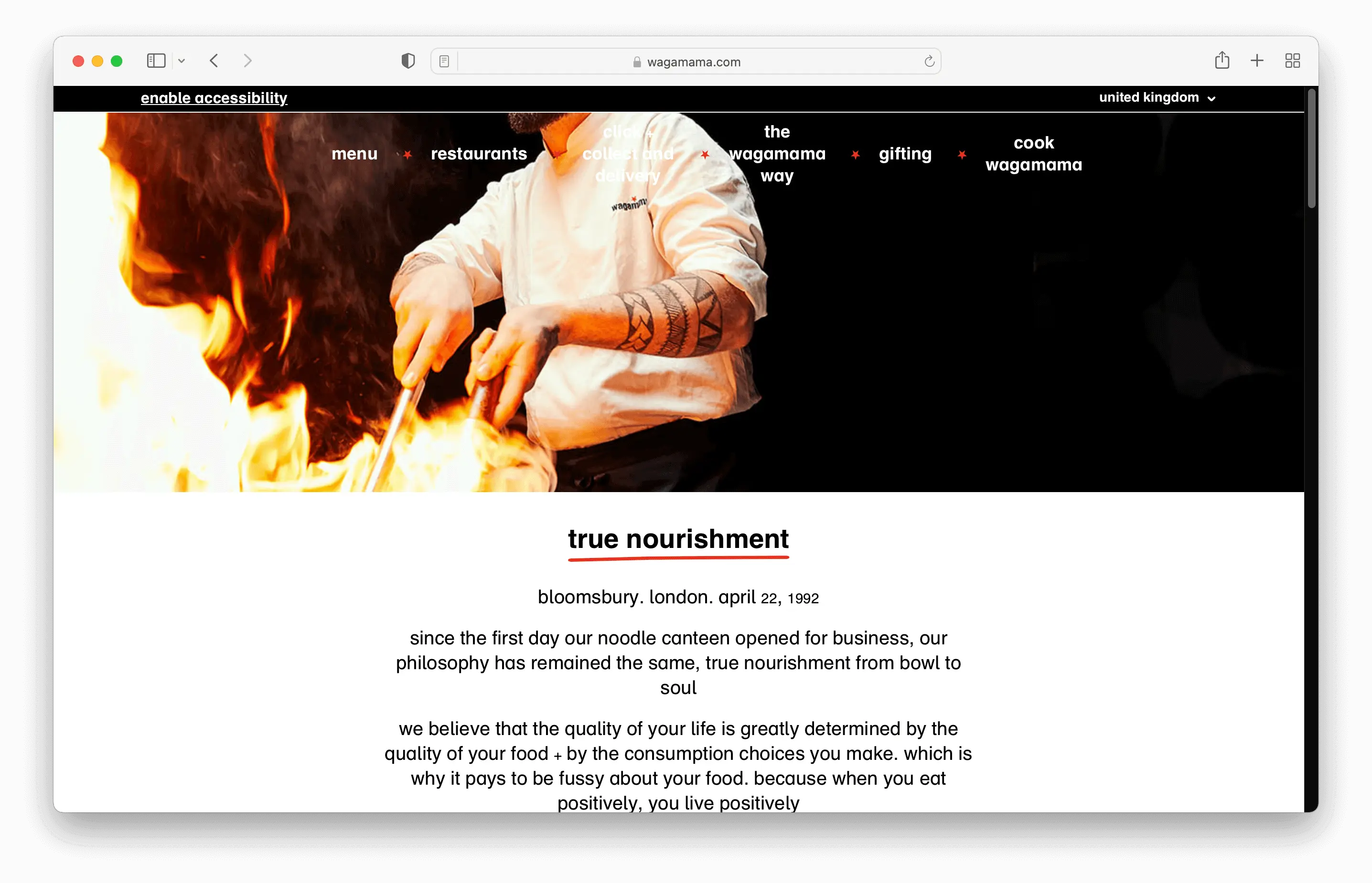 Since Wagamama’s website cannot be reached by the users in China, we don’t provide a screen recorded video, even if we did, you will only see a blank screen like the above image.