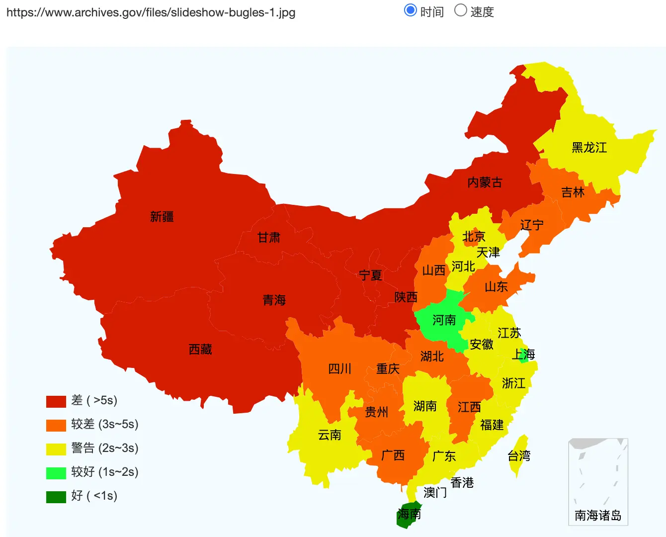 From our speed test, people in China will have difficulty opening on National Archives’s website (that’s what the below figure means, red/orange/yellow means unable to display images).