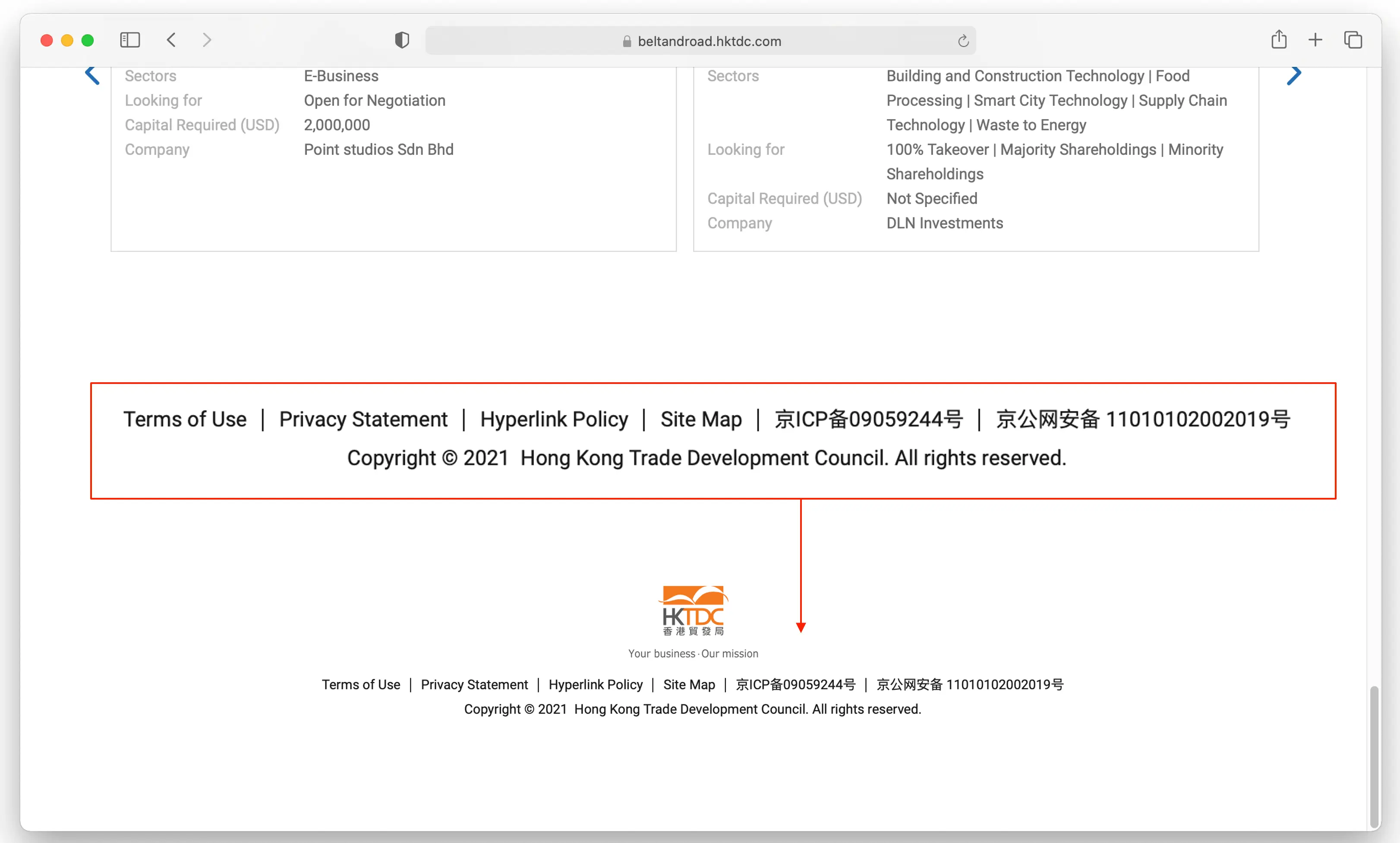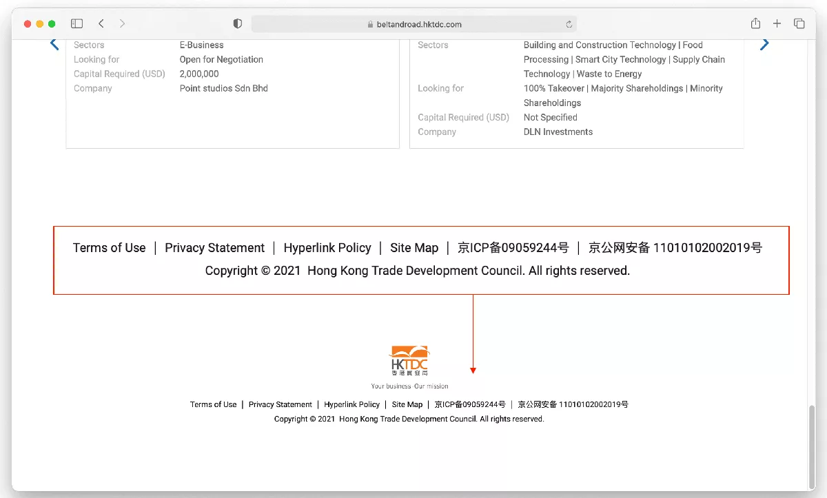 Finding if a website has an ICP license is pretty straightforward, just scroll to the bottom of the page, if you see a number like this (see below HKTDC’s websites for China), then the business behind the website has an ICP for China. If not, they don’t have it. You can check if your website has it or not.