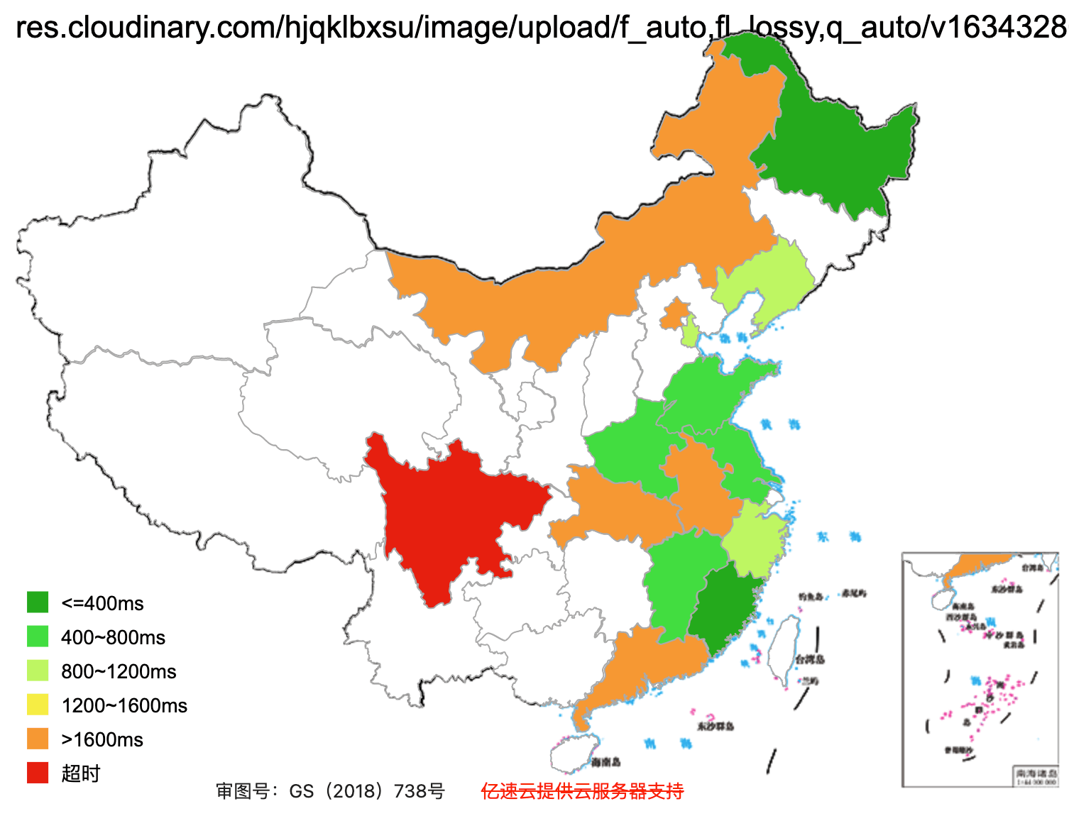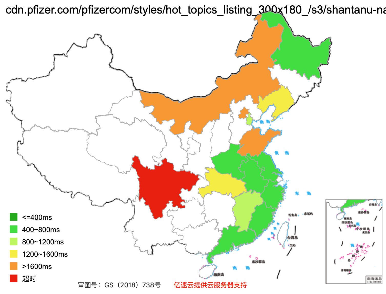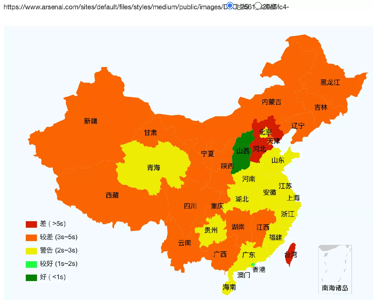 This figure basically shows how fast the website loads across Mainland China (green = fast, red=slow)