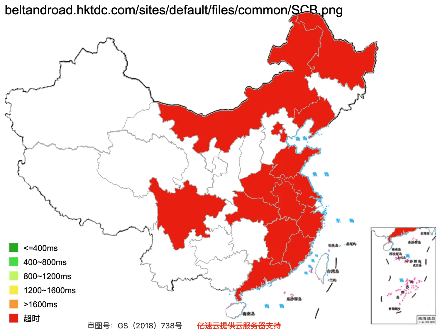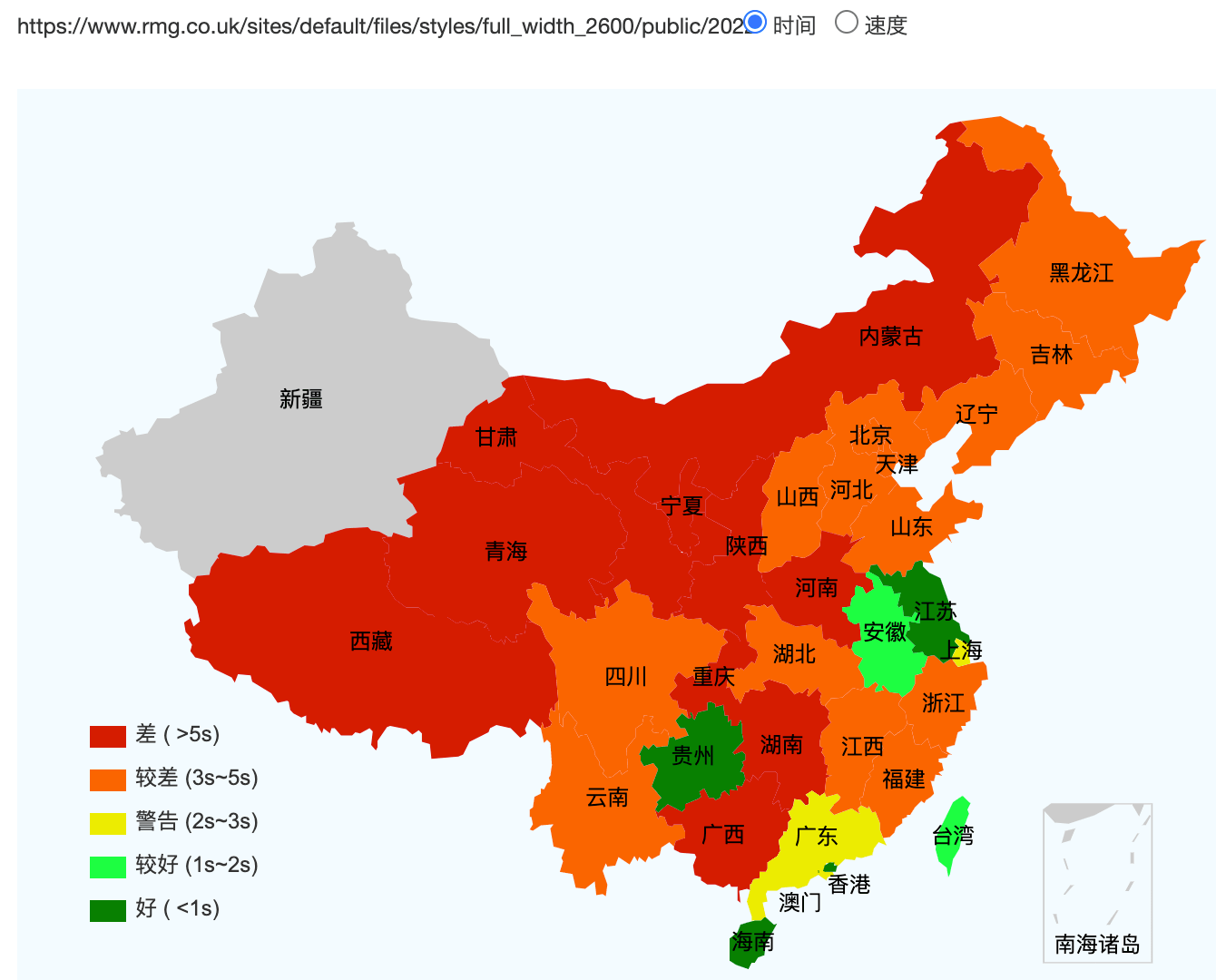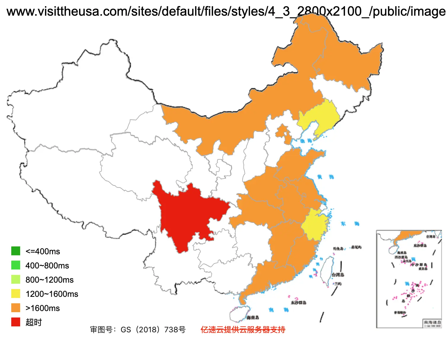 This figure basically shows how fast the website loads across Mainland China (green = fast, red=slow)