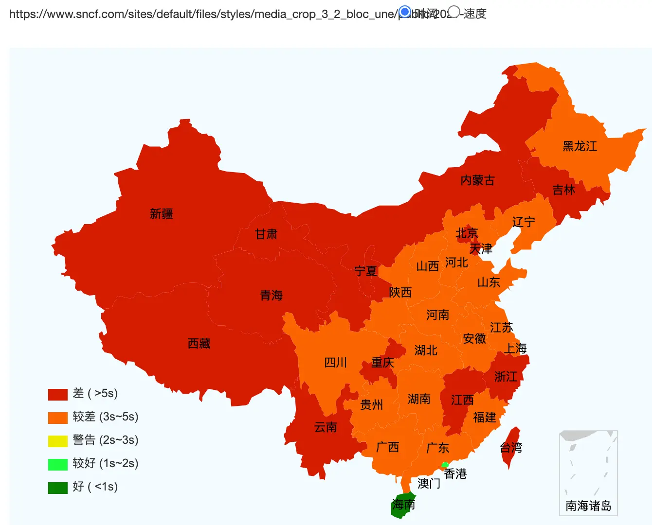 From our speed test, people in China will have difficulty opening on SNCF’s website (that’s what the below figure means, red/orange means unable to display images).