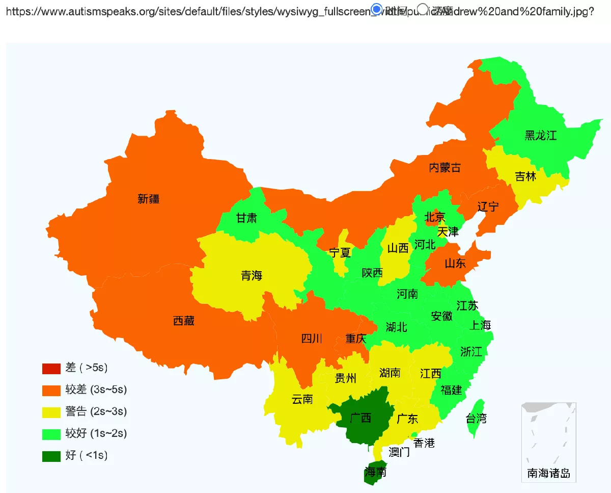 From our speed test, people in China will have difficulty viewing the images and opening Autism Speaks’s website (that’s what the below figure means, orange/yellow means unable to display images).