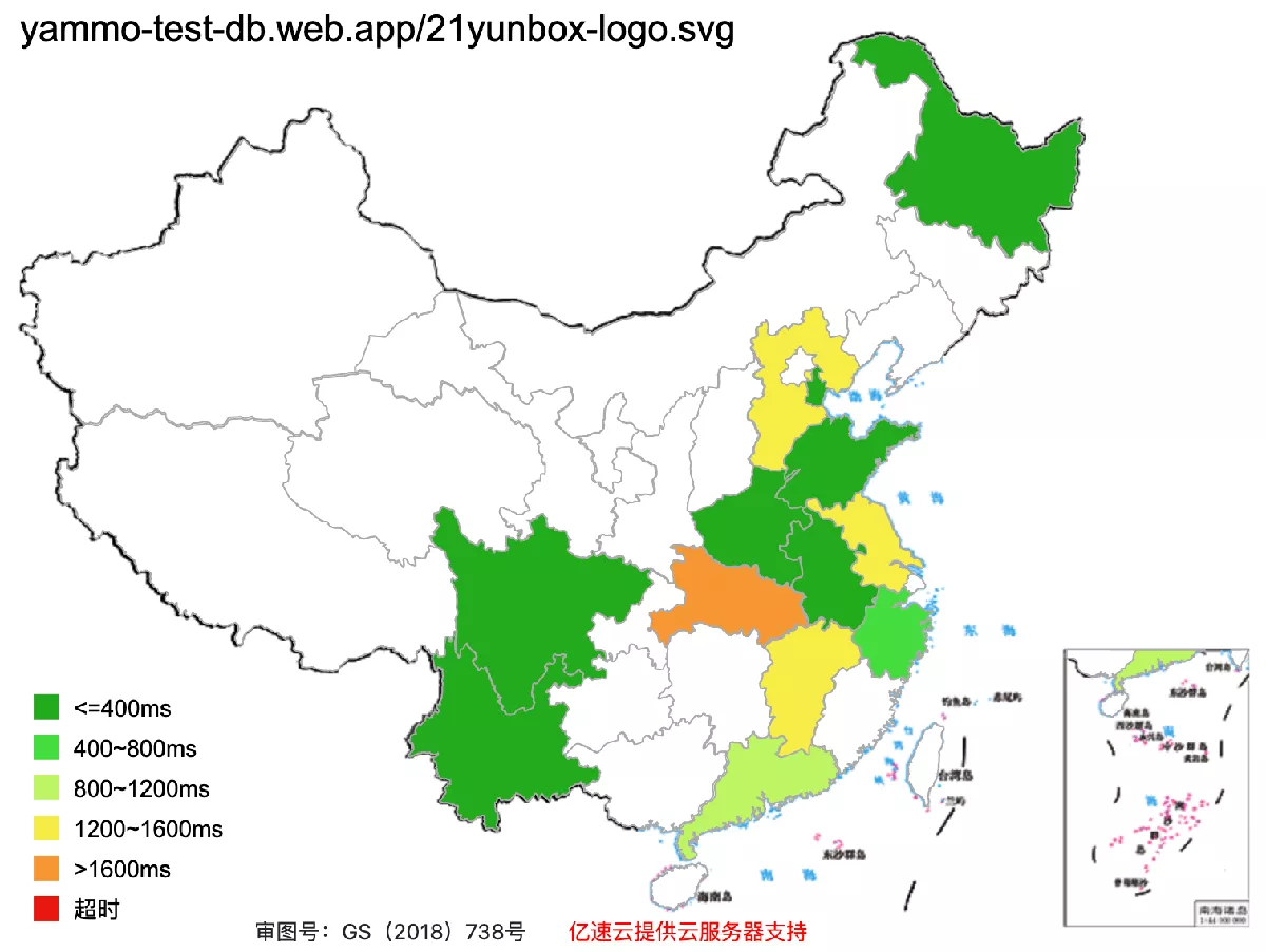 Using a third-party speed testing tool, we ran a China speed test on a small media asset hosted on Firebase to see how it would load across China.
