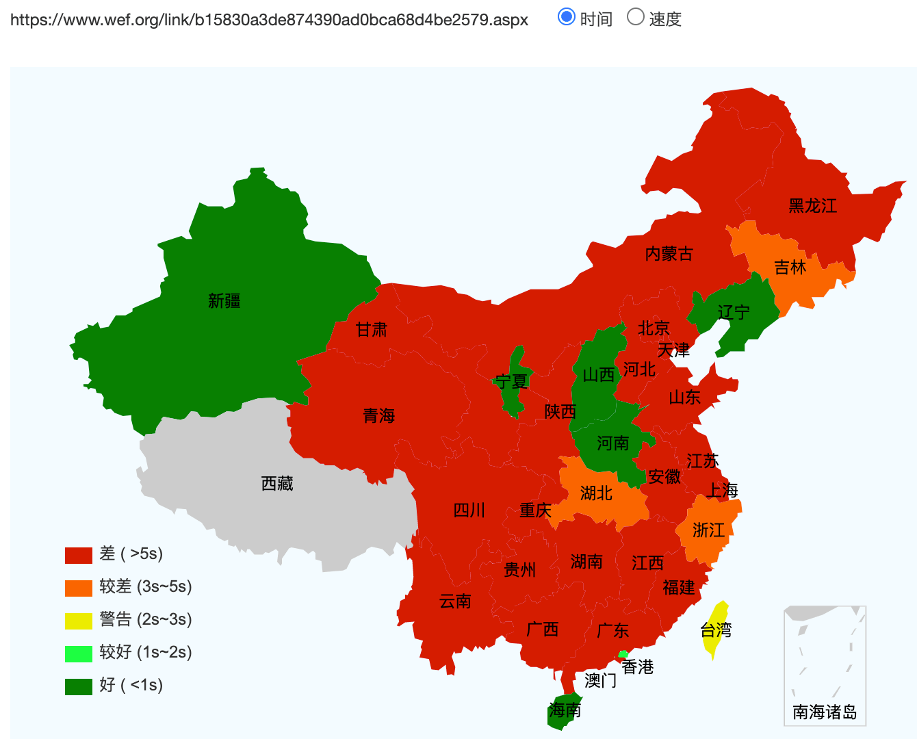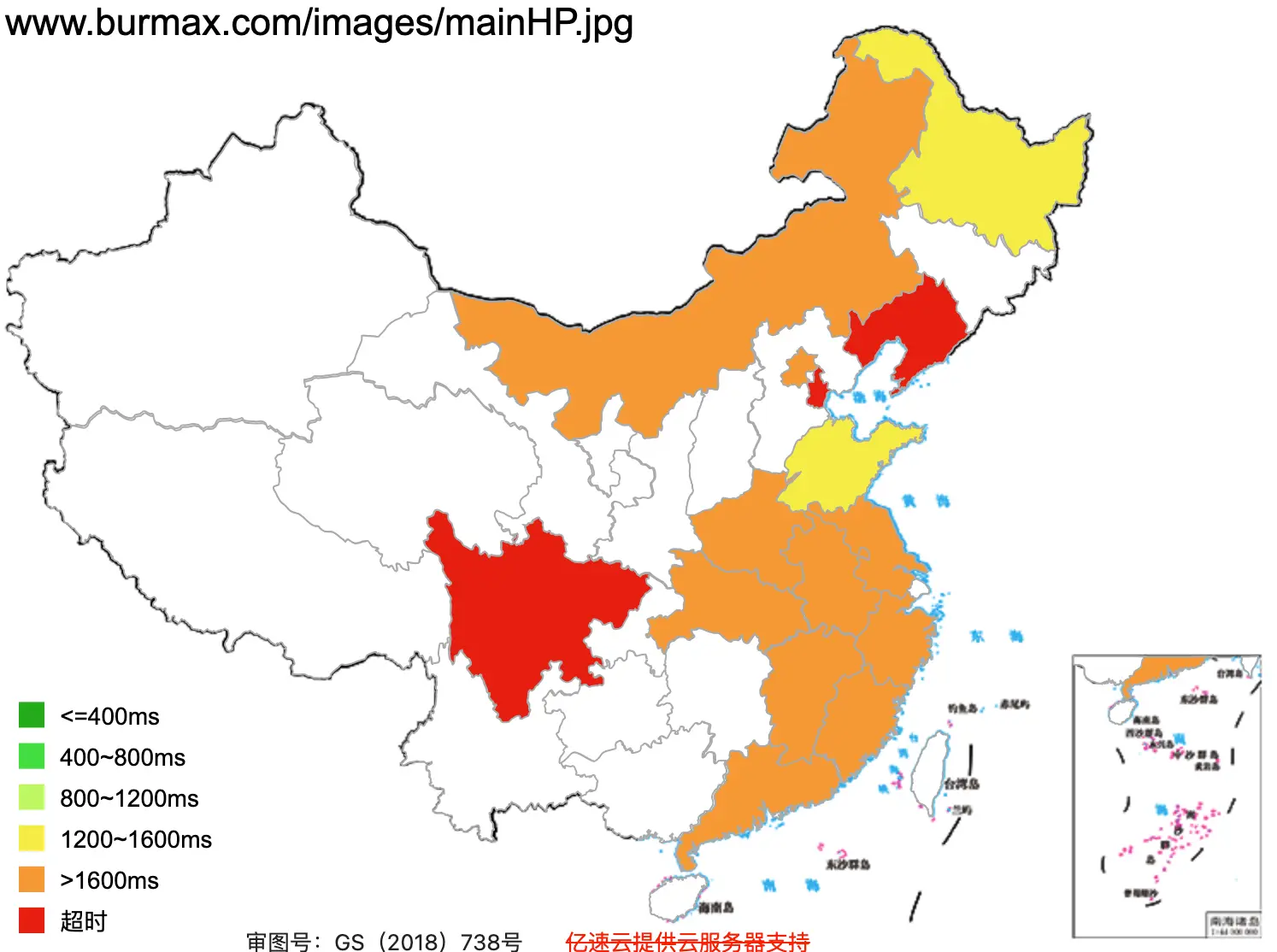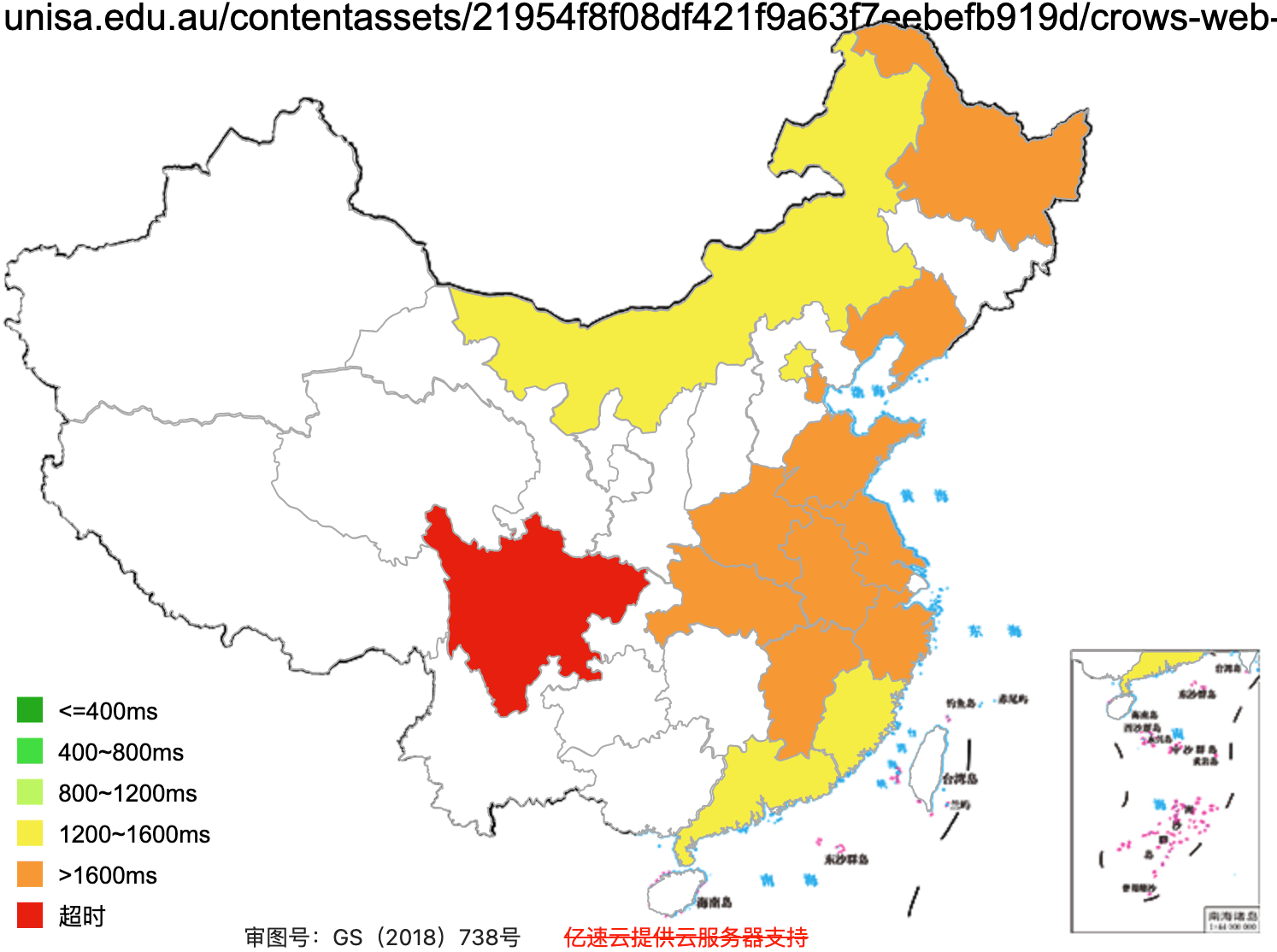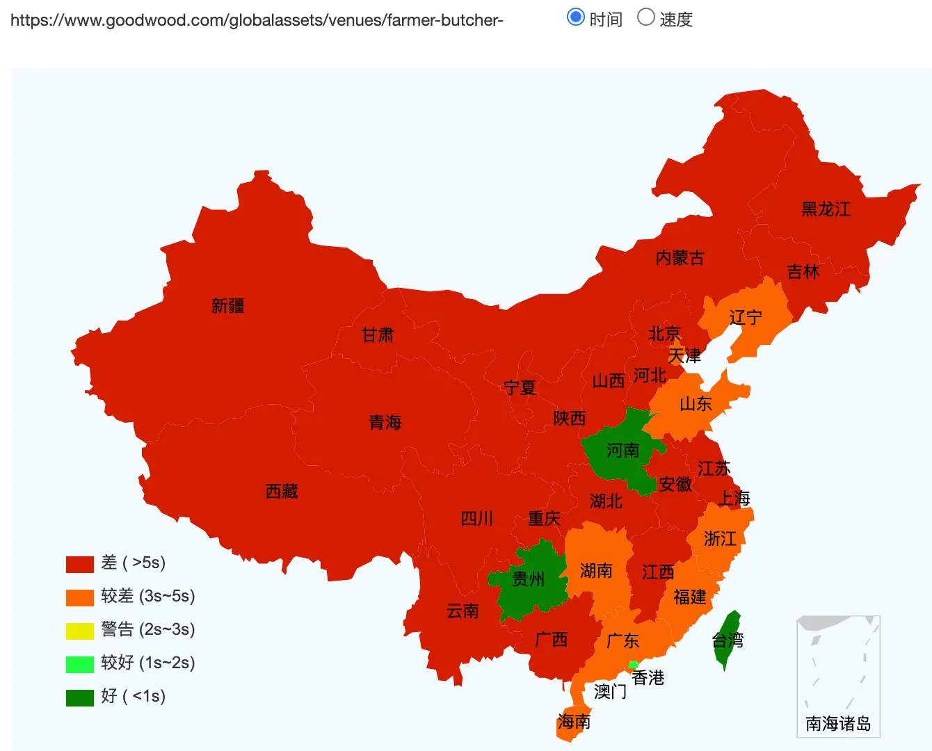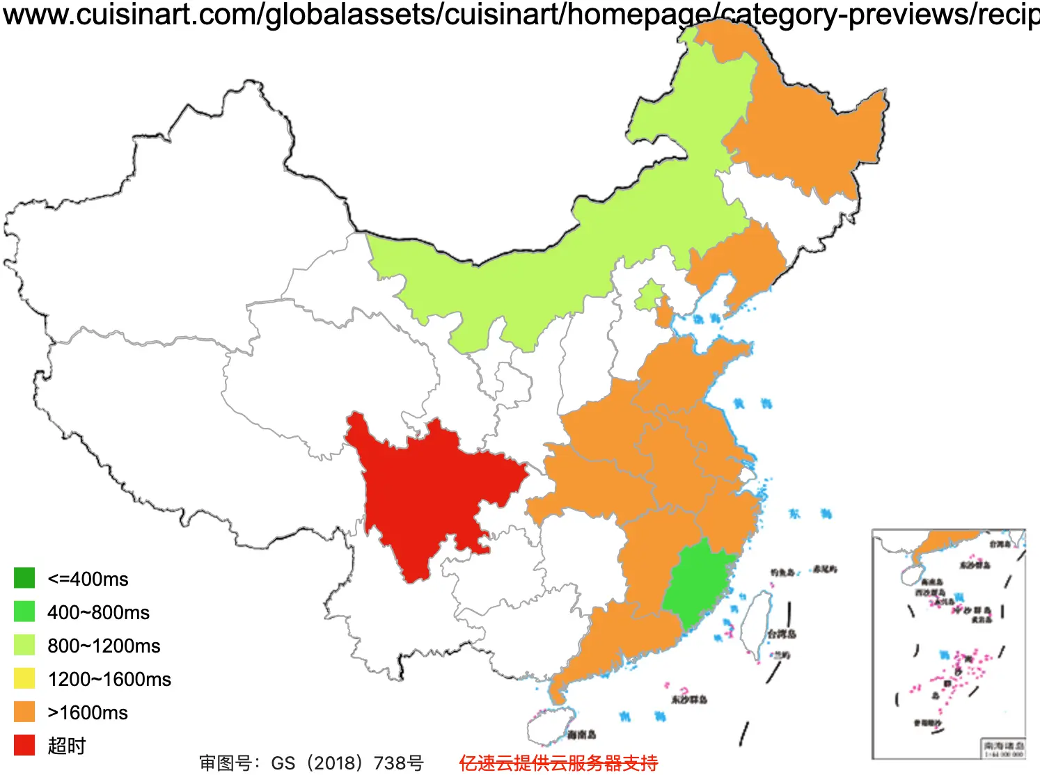 This figure basically shows how fast the website loads across Mainland China (green = fast, red =slow)
