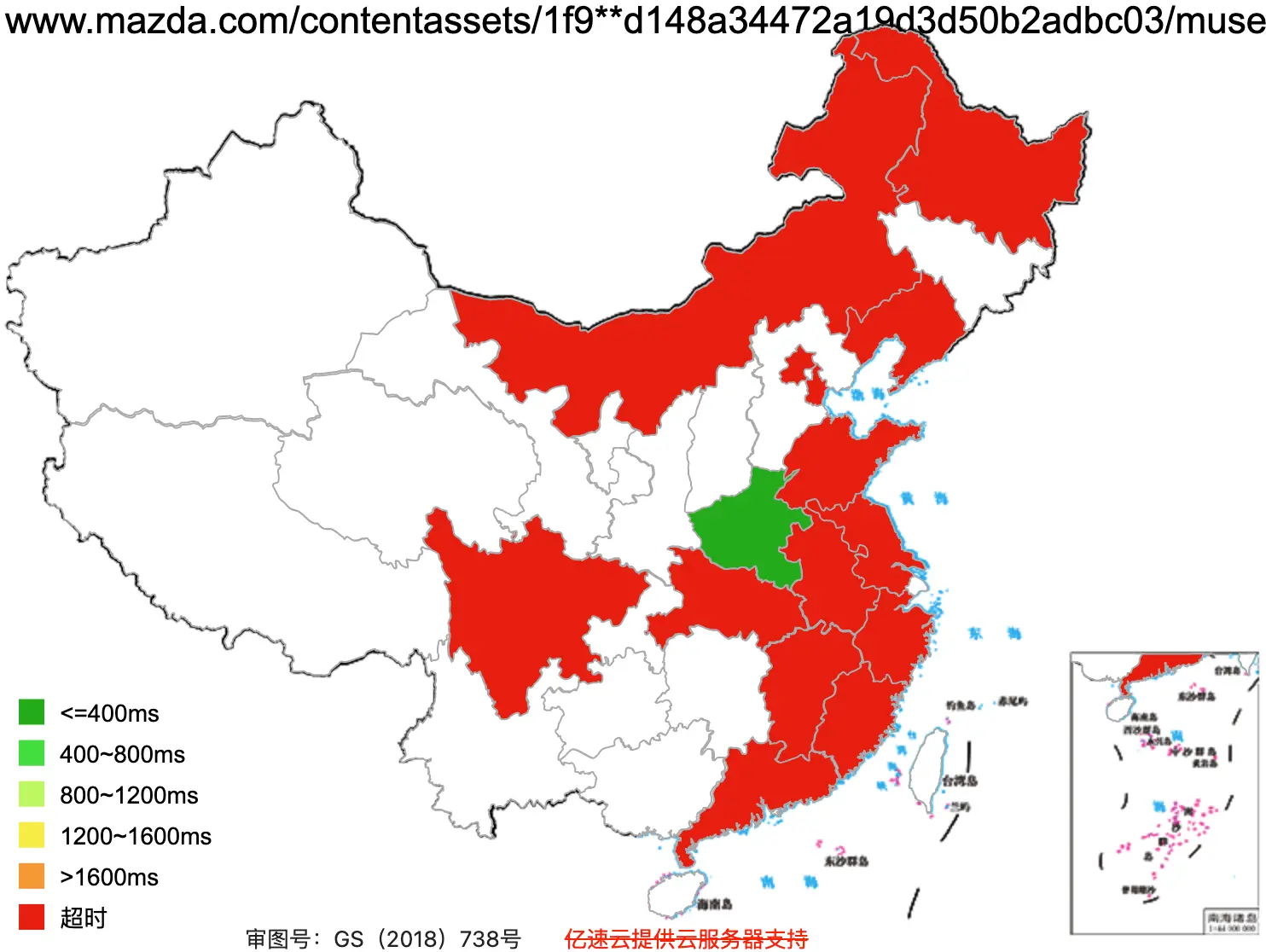 From our speed test, people in China have difficulty viewing the images on the Mazda’s website. (that’s what the below figure means, red means unable to display images).