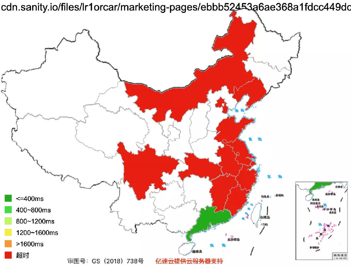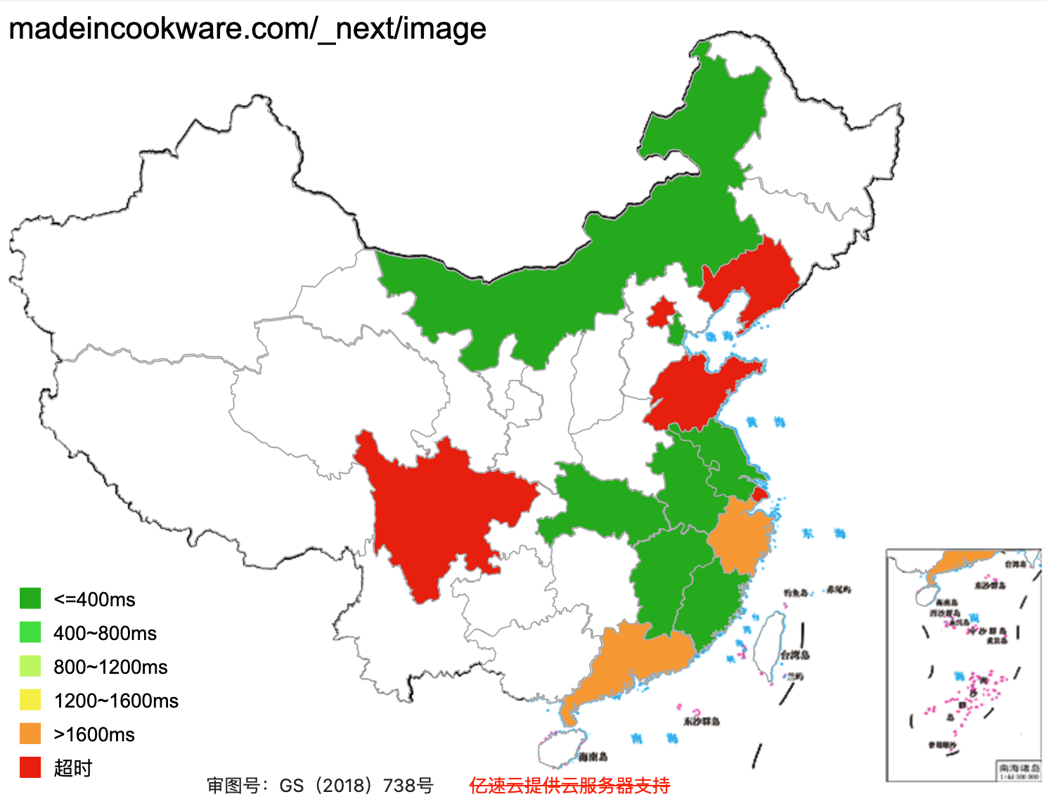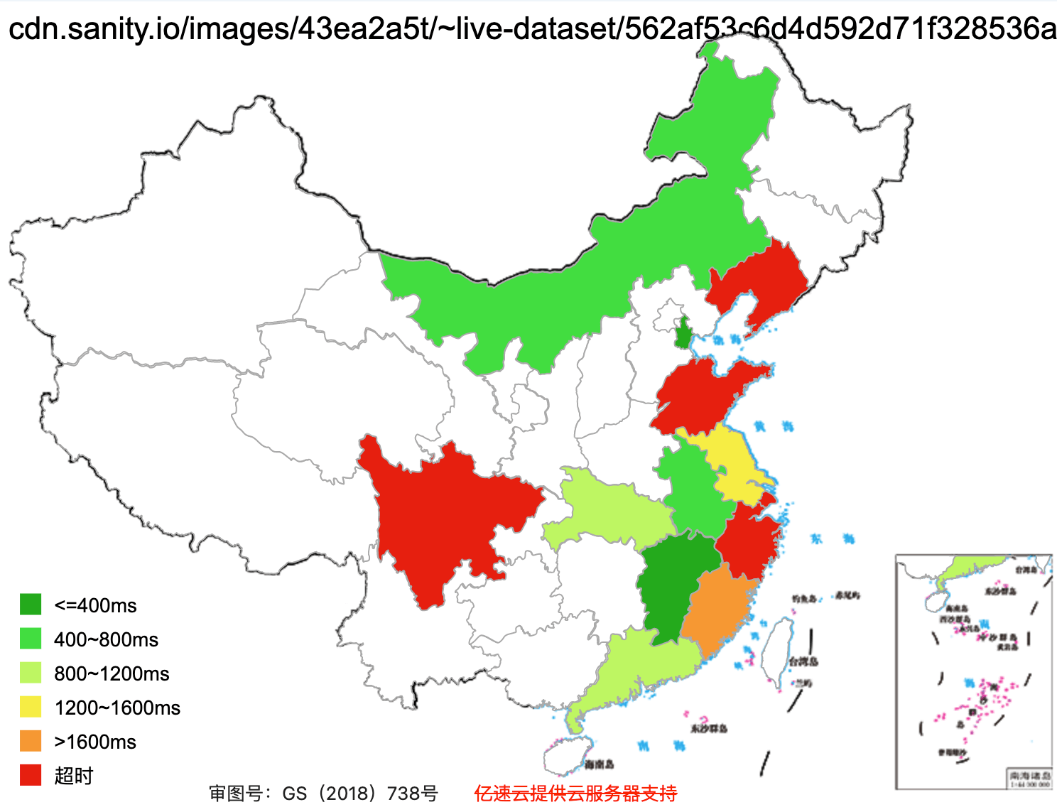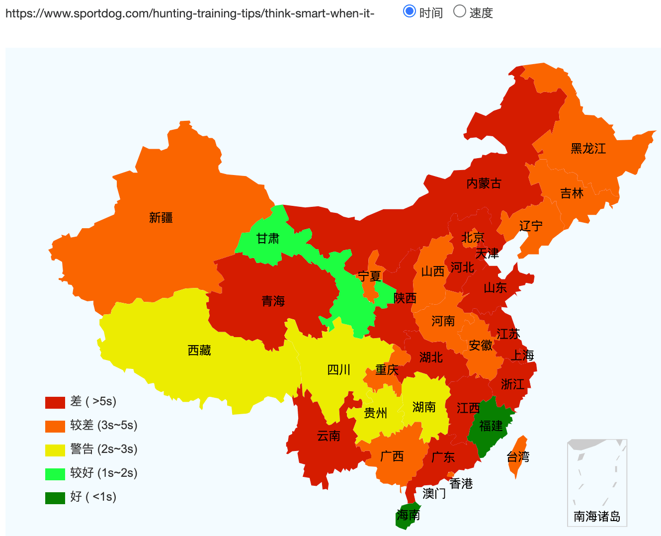 This figure basically shows how fast the website loads across Mainland China (green = fast 👍, red/orange/yellow/grey = slow 👎)