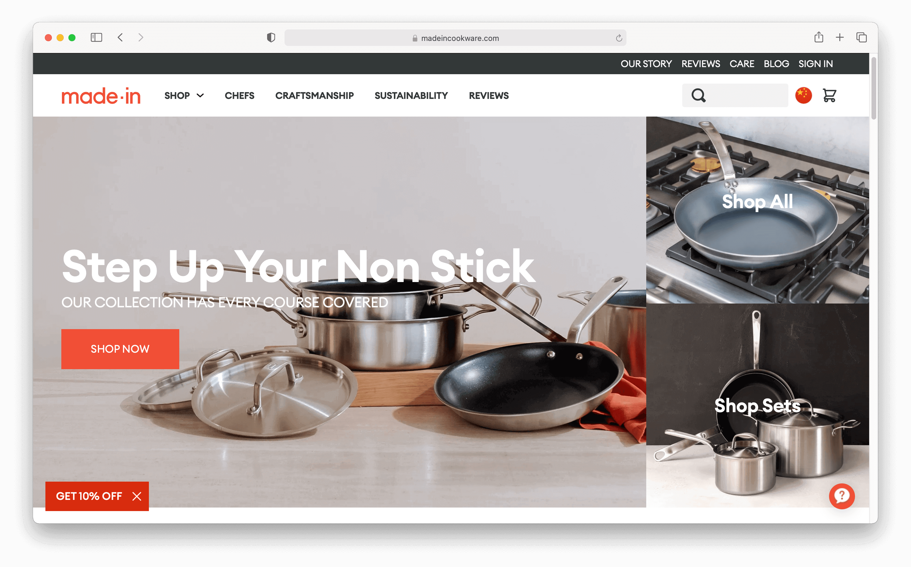 Made In Cookware is a direct-to-consumer kitchen brand that manufactures stainless steel and carbon steel cookware and knives.