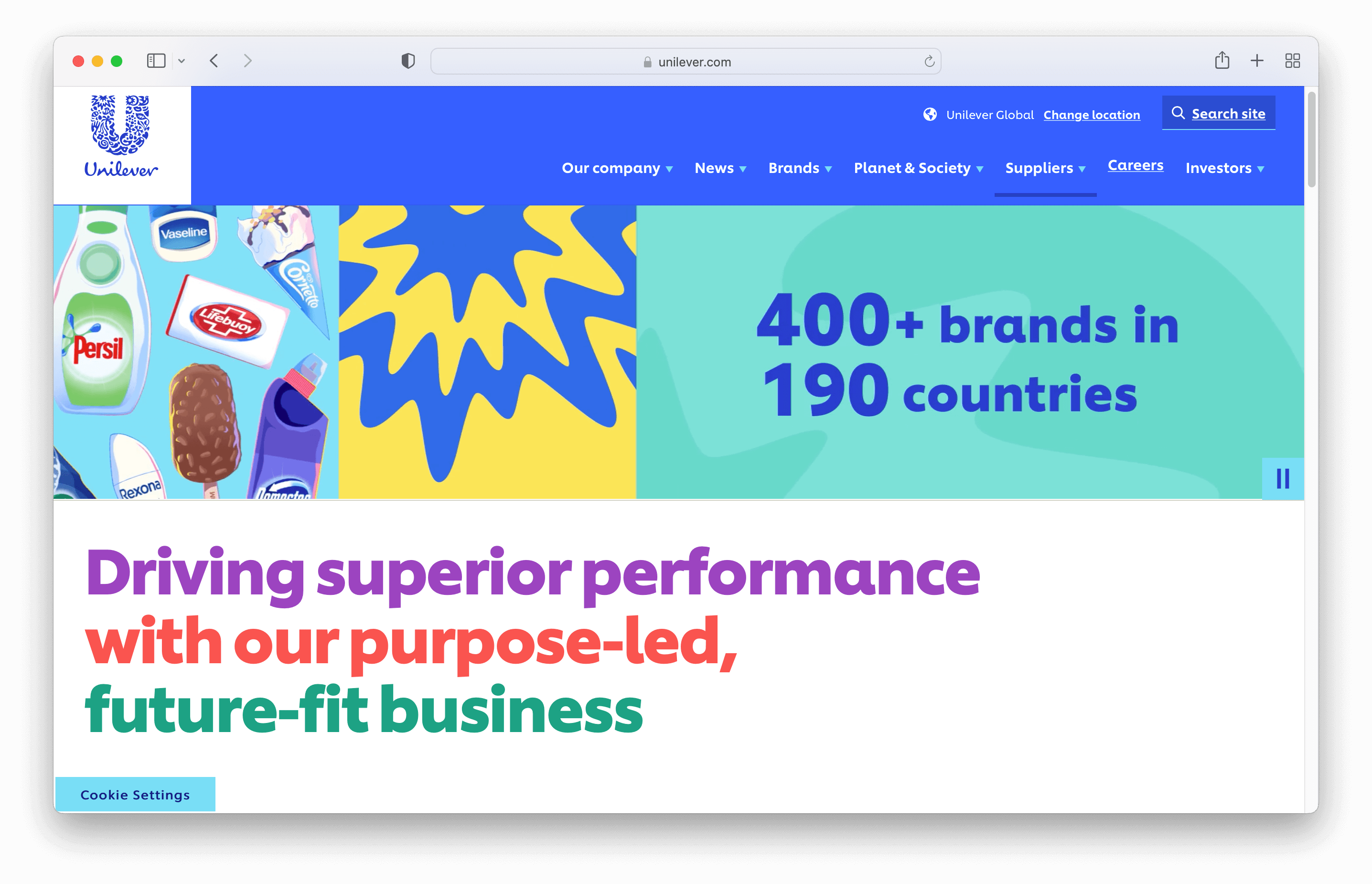 Unilever (UL) is a British multinational consumer goods company with headquarters in London. Unilever products include food, condiments, ice cream, cleaning agents, beauty products, and personal care. Unilever is the largest producer of soap in the world and its products are available in around 190 countries.