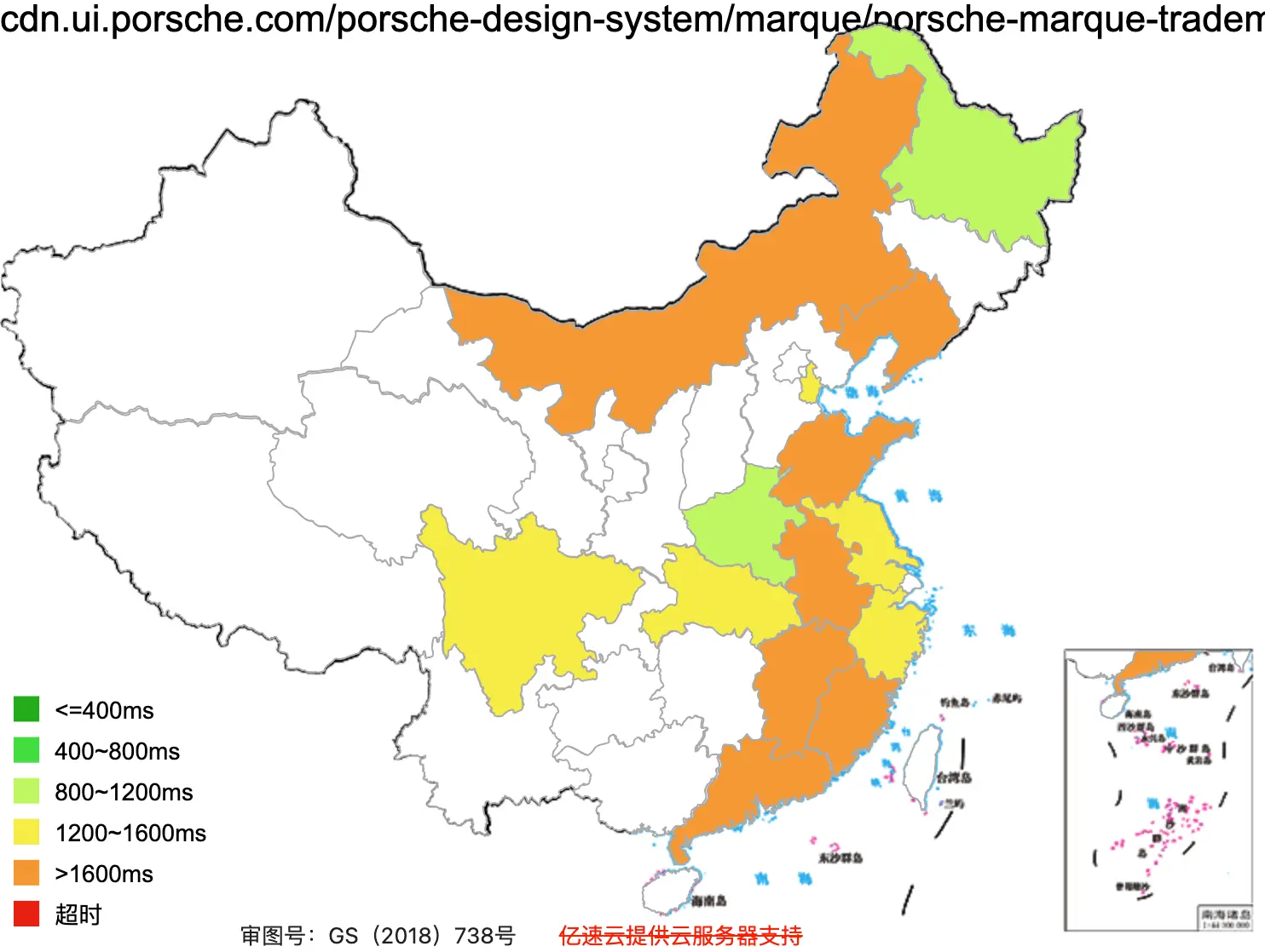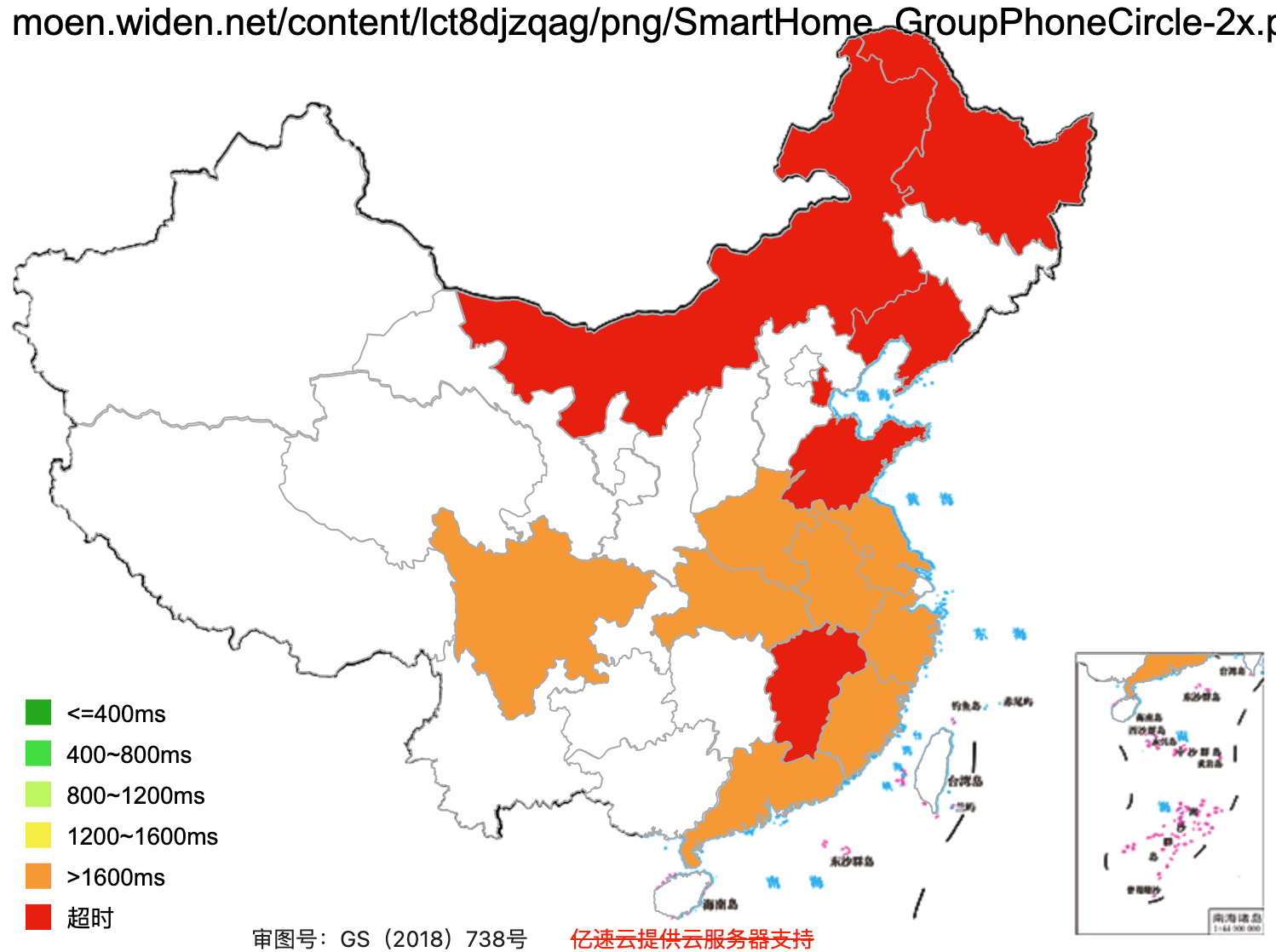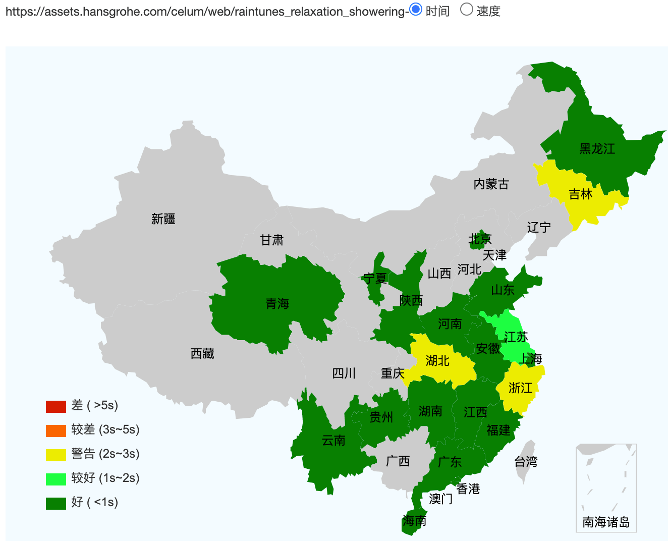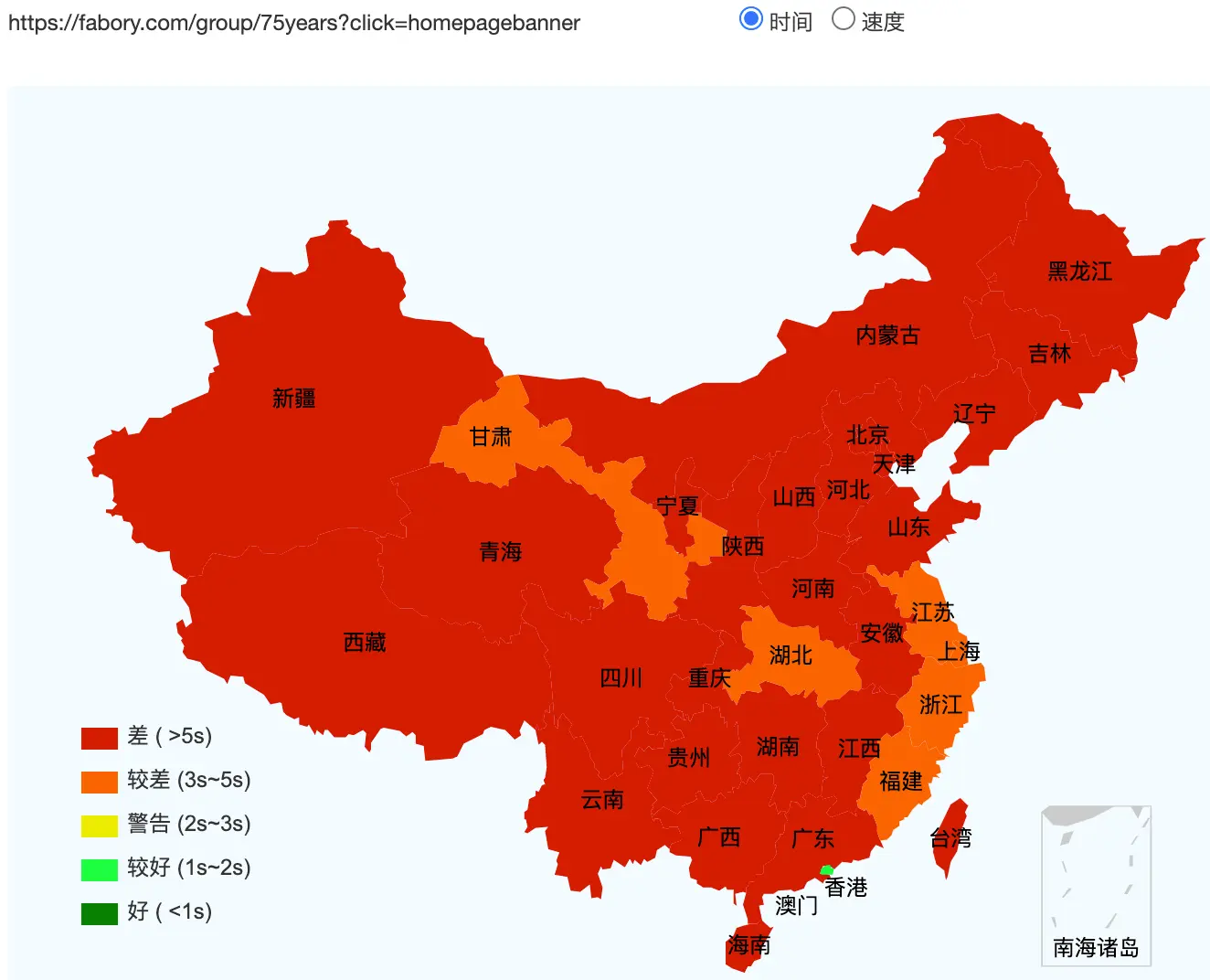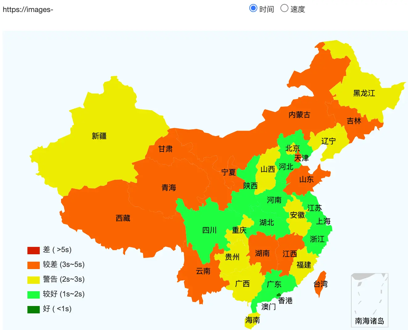 This figure basically shows how fast the website loads across Mainland China (green = fast, red =slow)
