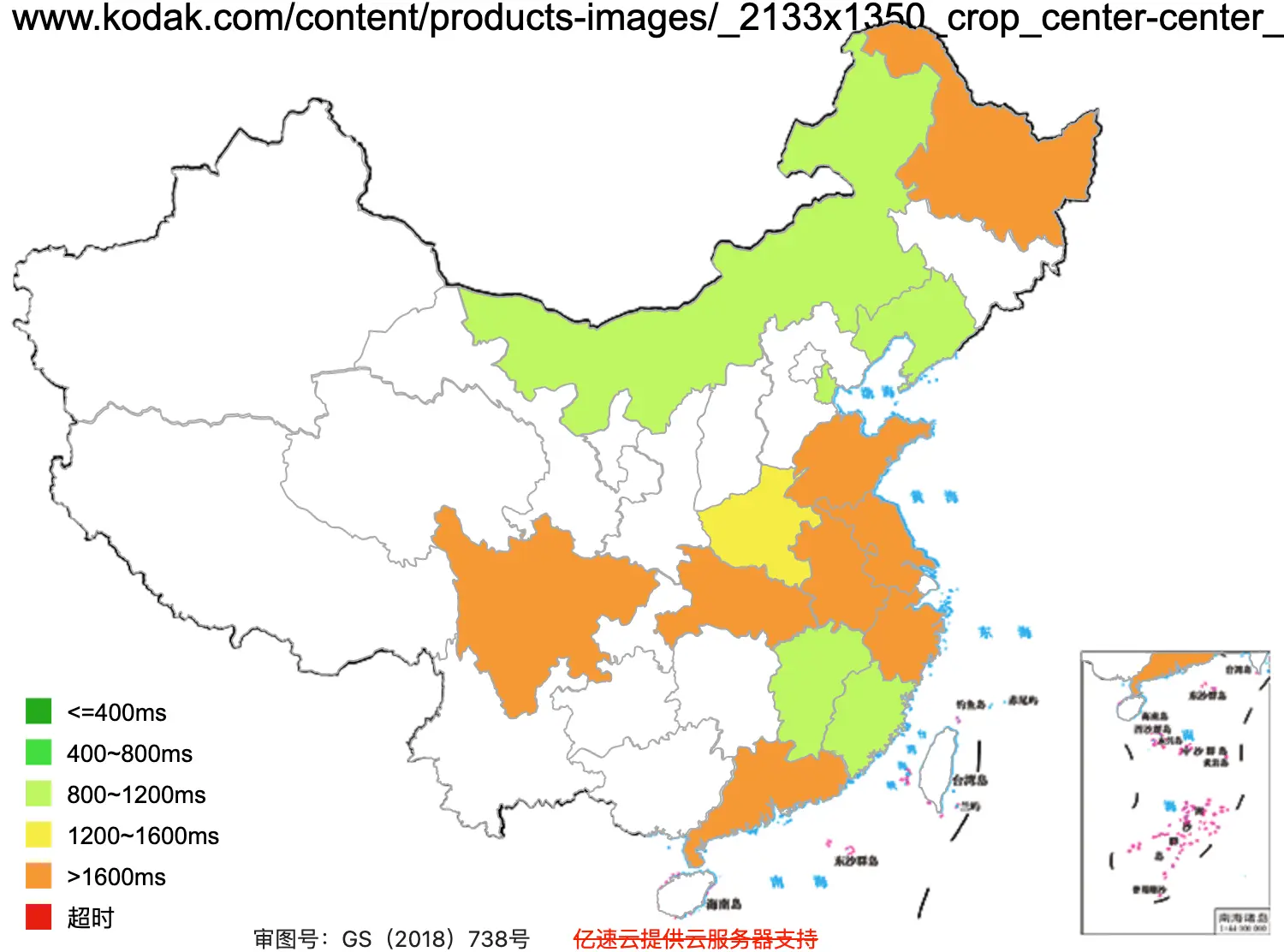 From our speed test, people in China have difficulty viewing the images on Kodak’s website. (that’s what the below figure means, red means unable to display images).