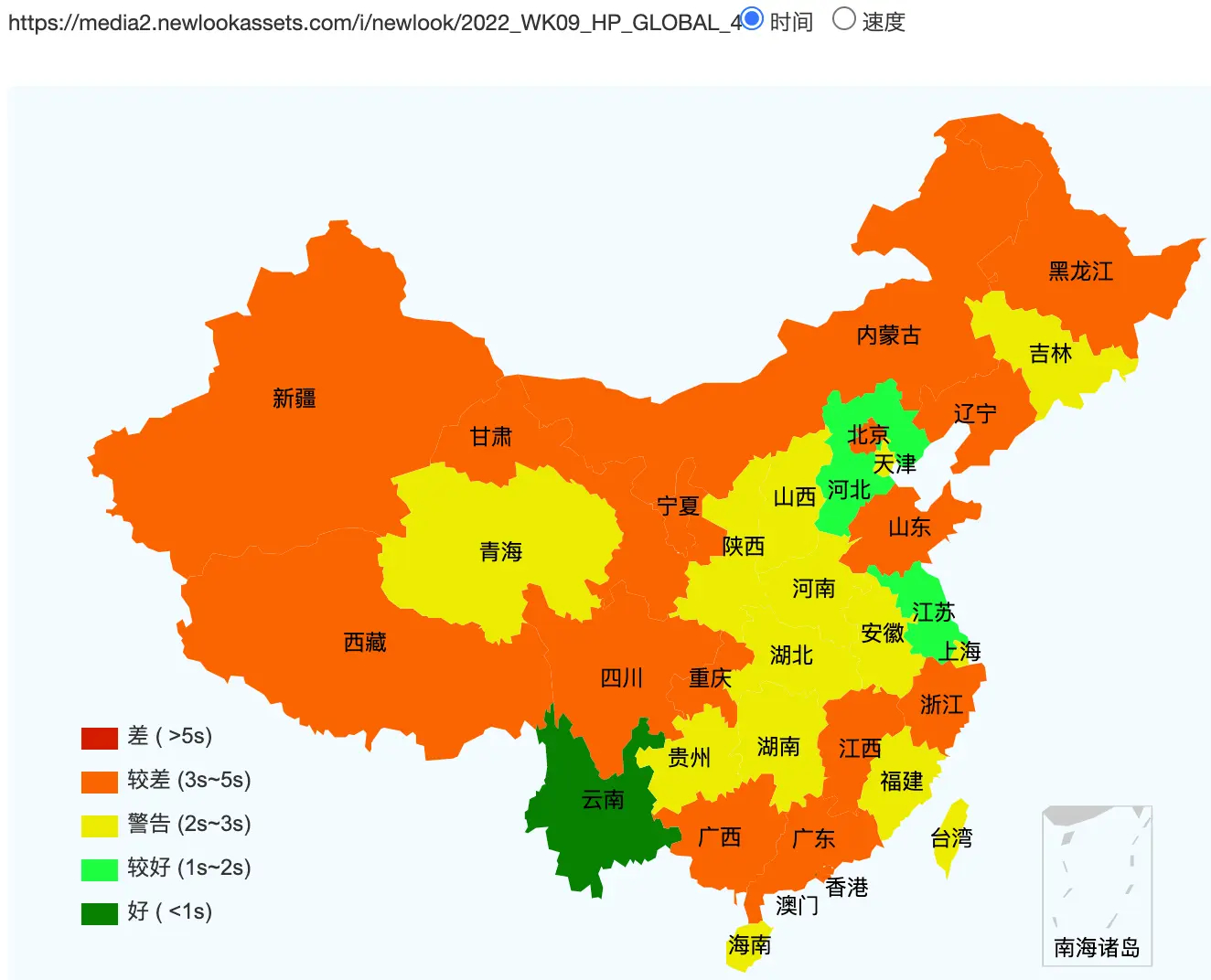 From our speed test, people in China will have difficulty viewing the images and opening New Look’s website (that’s what the below figure means, red/orange/yellow means unable to display images).
