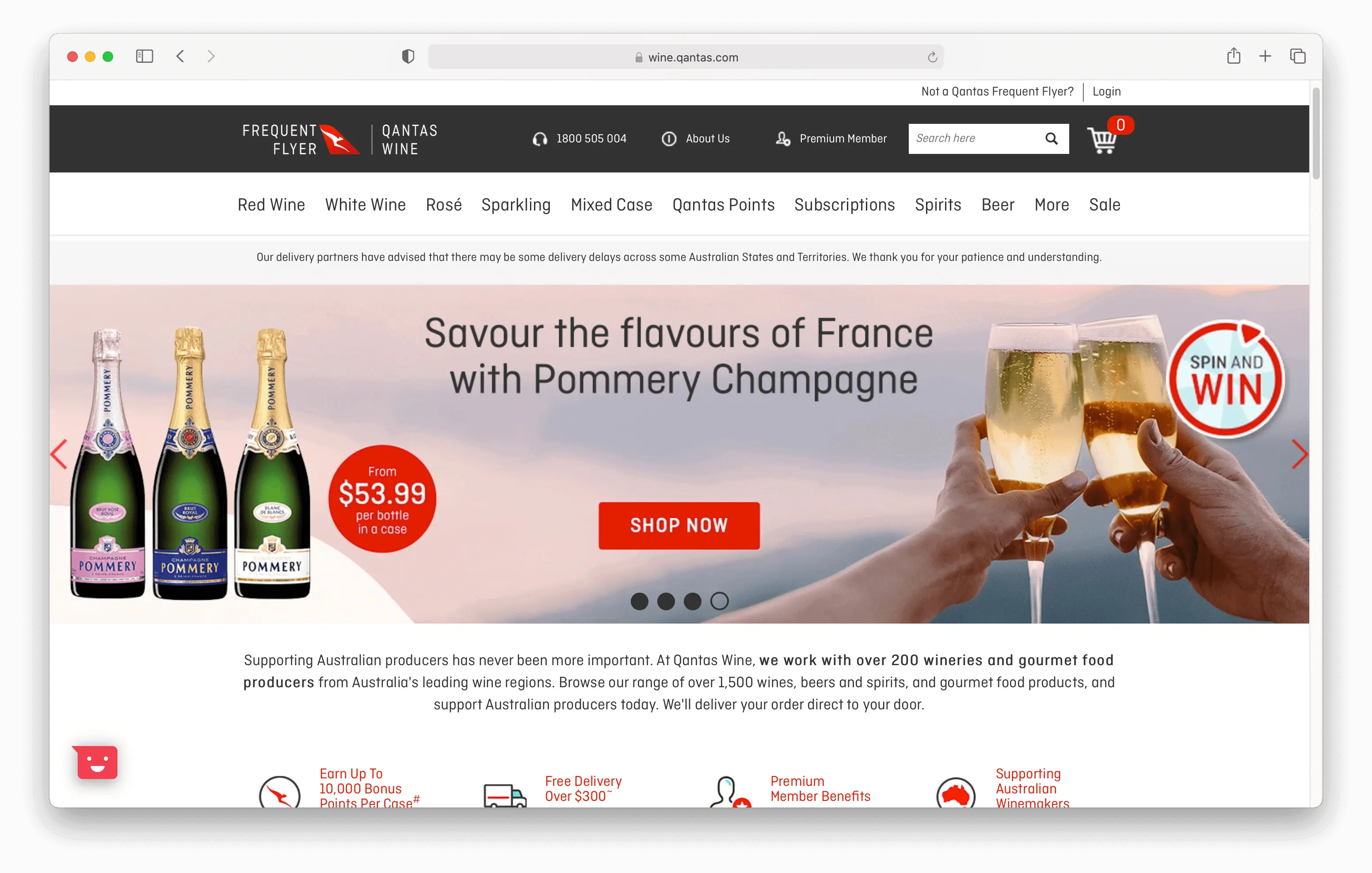 Qantas Wine is subsidiary of Qantas Airways Limited (QABSY). Qantas Airways is the largest airline in Australia by fleet size, international flights and international destinations.