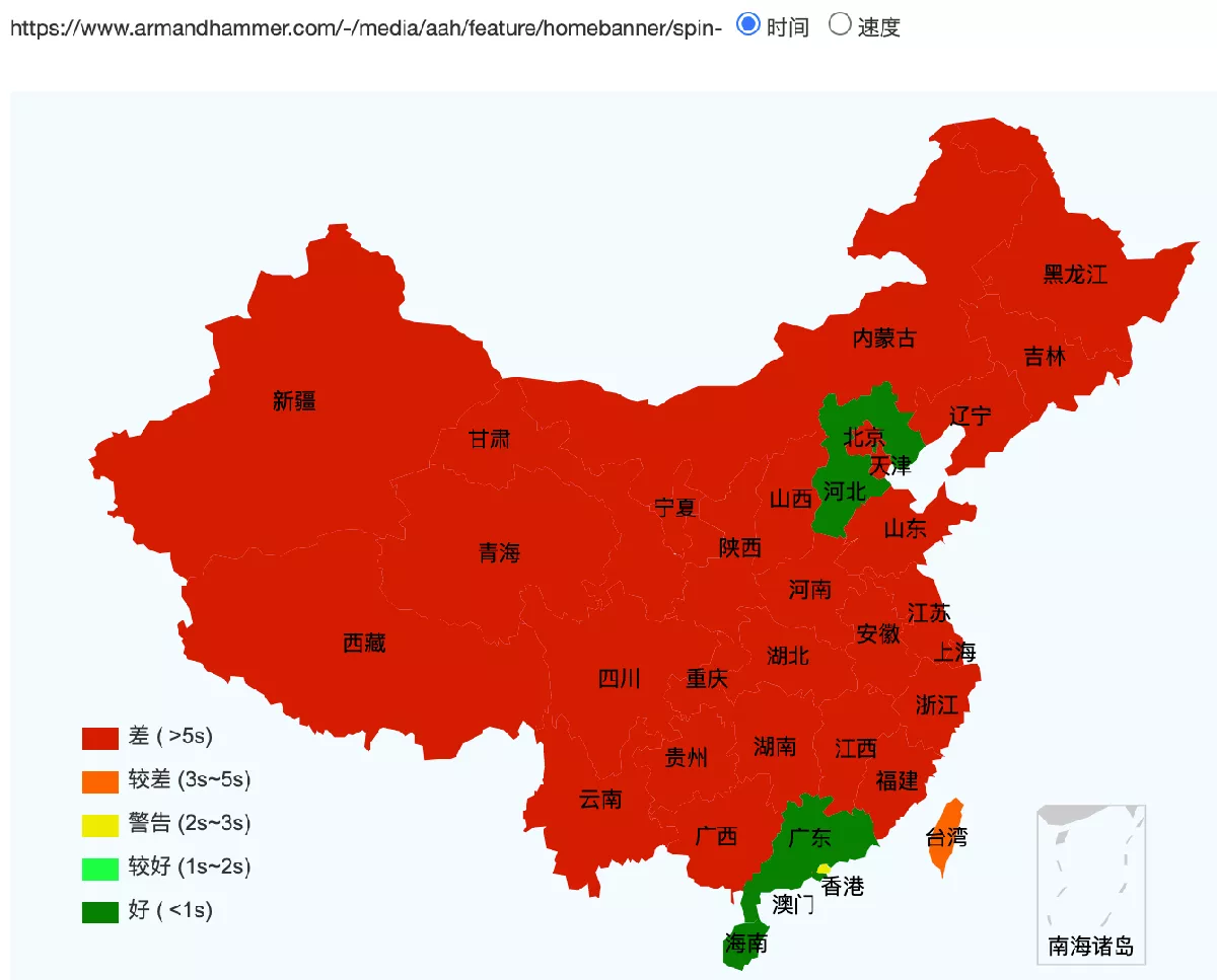 From our speed test, people in China will have difficulty opening on the Arm & Hammer’s website (that’s what the below figure means, red means unable to display images).