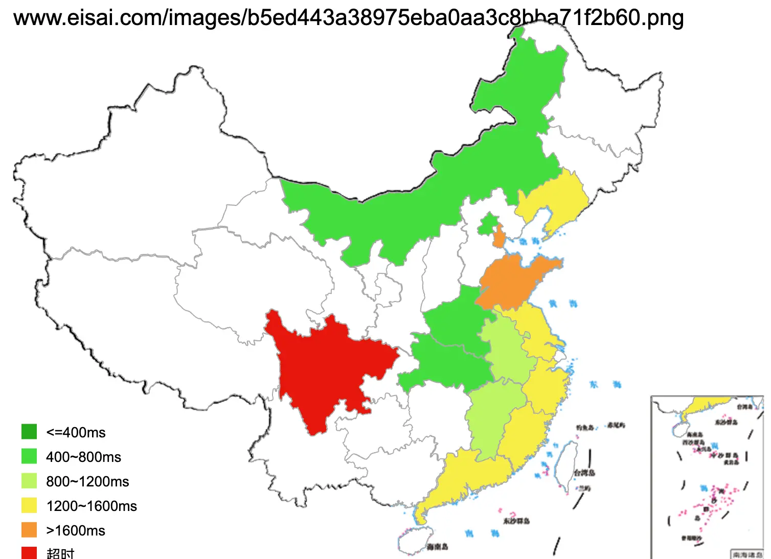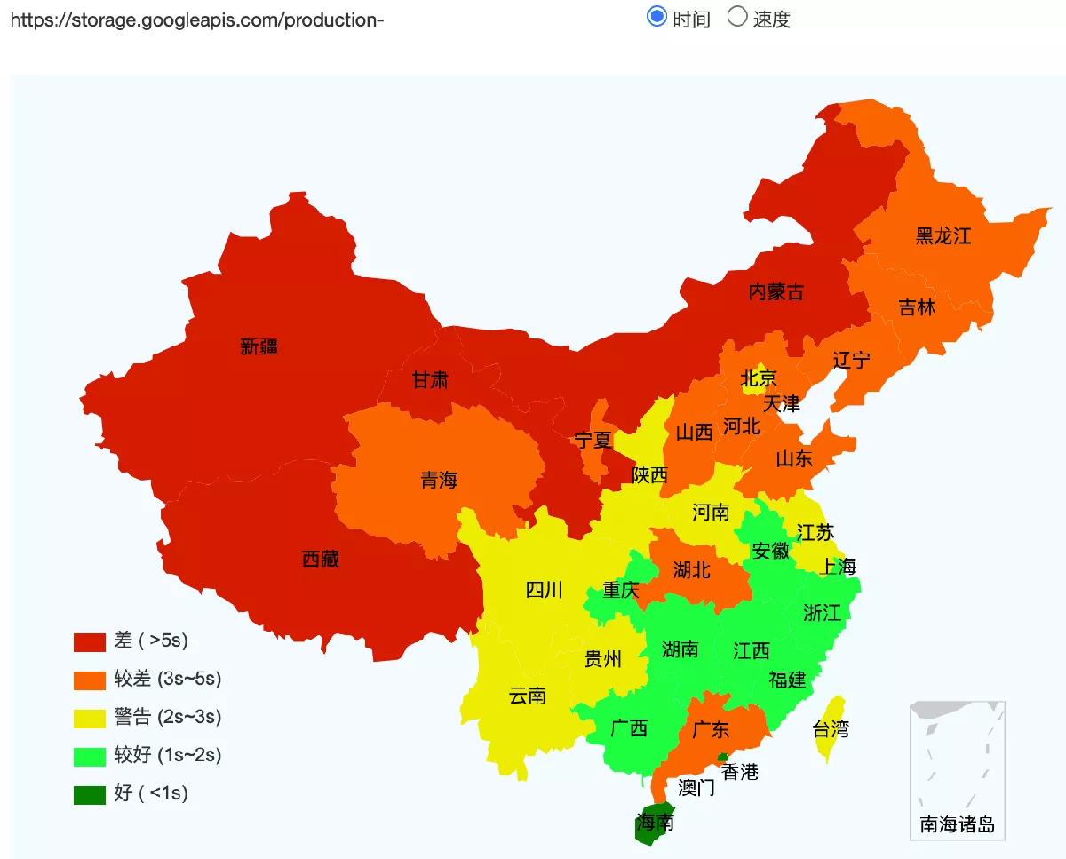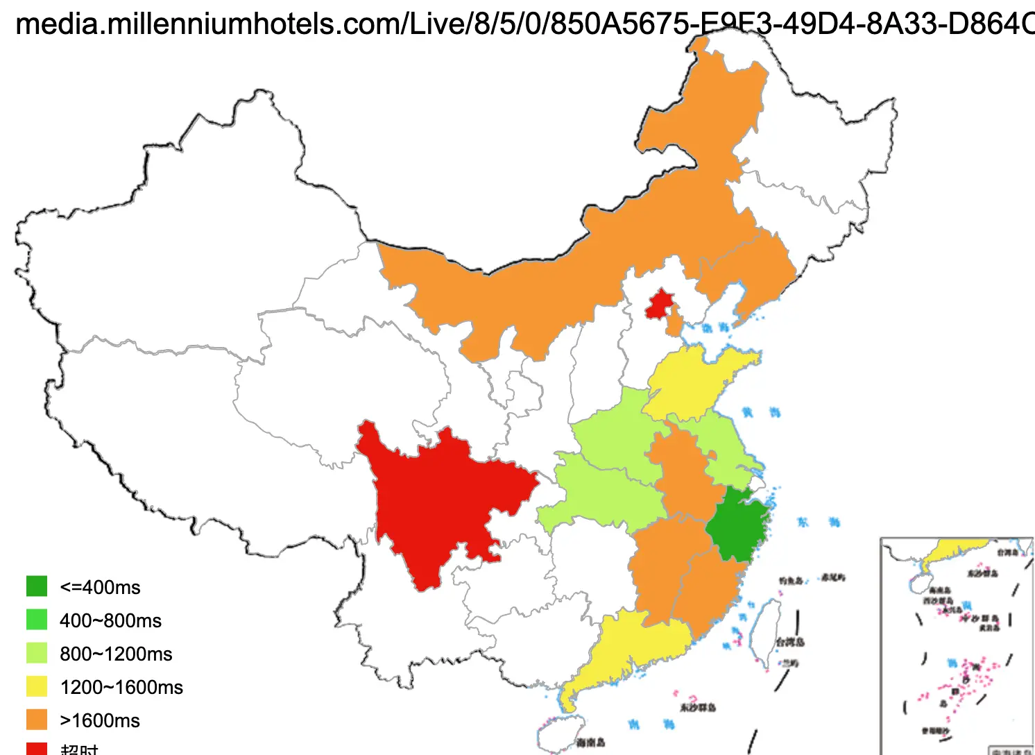 This figure basically shows how fast the website load across Mainland China (green = fast, red=slow)