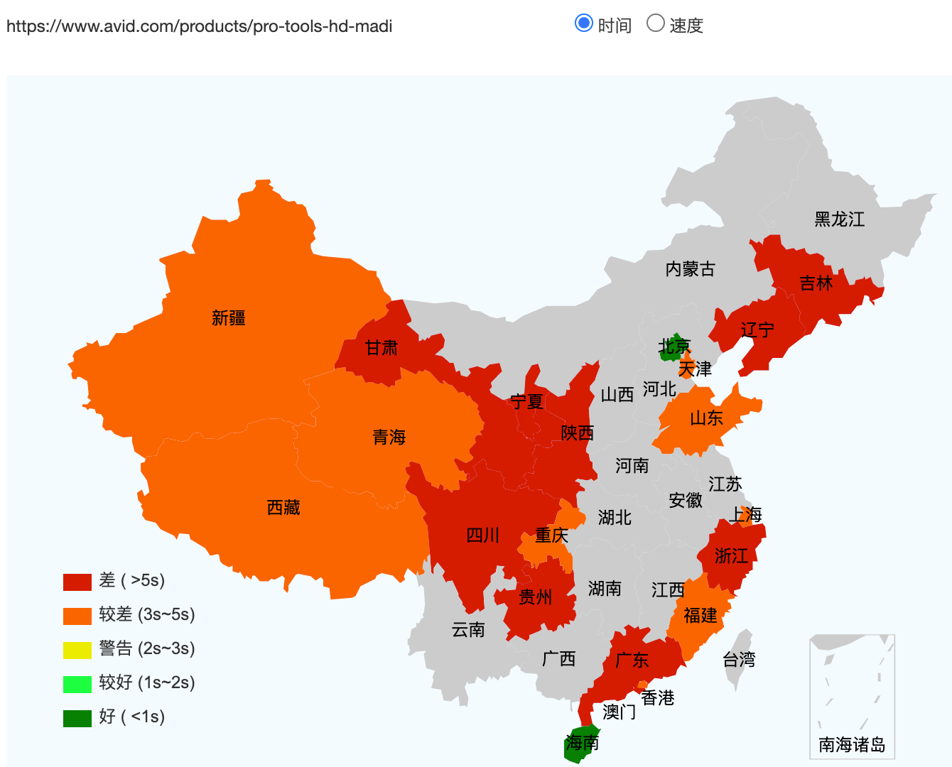 From our speed test, people in China will have difficulty opening on the Avid website (that’s what the below figure means, red/orange/grey means unable to display images).