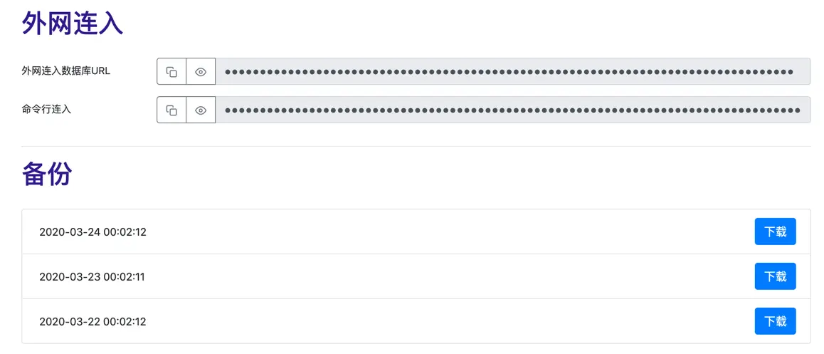 21YunBox provides a free 7-day cloud database backup, which is stored on a multi-backup cloud disk in .sql.gz format on a daily basis.
