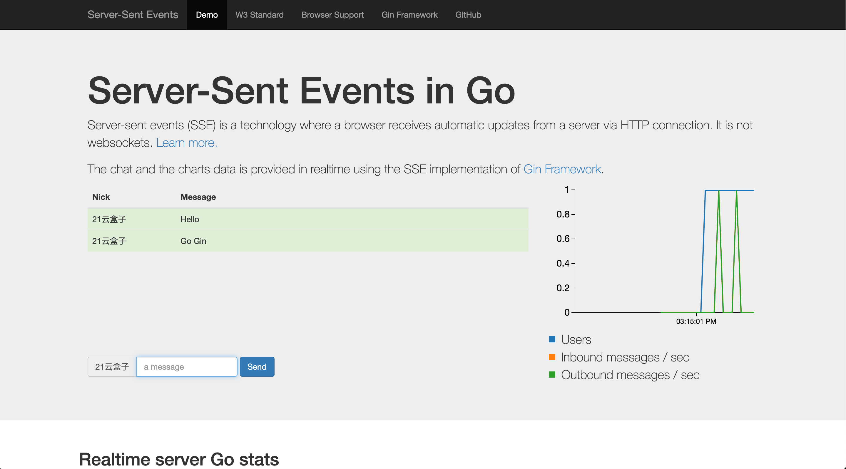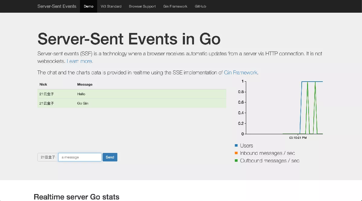 Go Gin Startup Template is a real-time chat project implemented using Gin, using server-sent events (SSEs) to broadcast messages (not websockets).