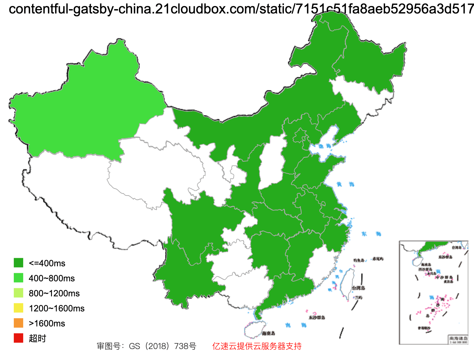 Once the website is up and running on 21YunBox CDN, we ran a speed test on the website in all the provinces and major cities in China, and here is the result: