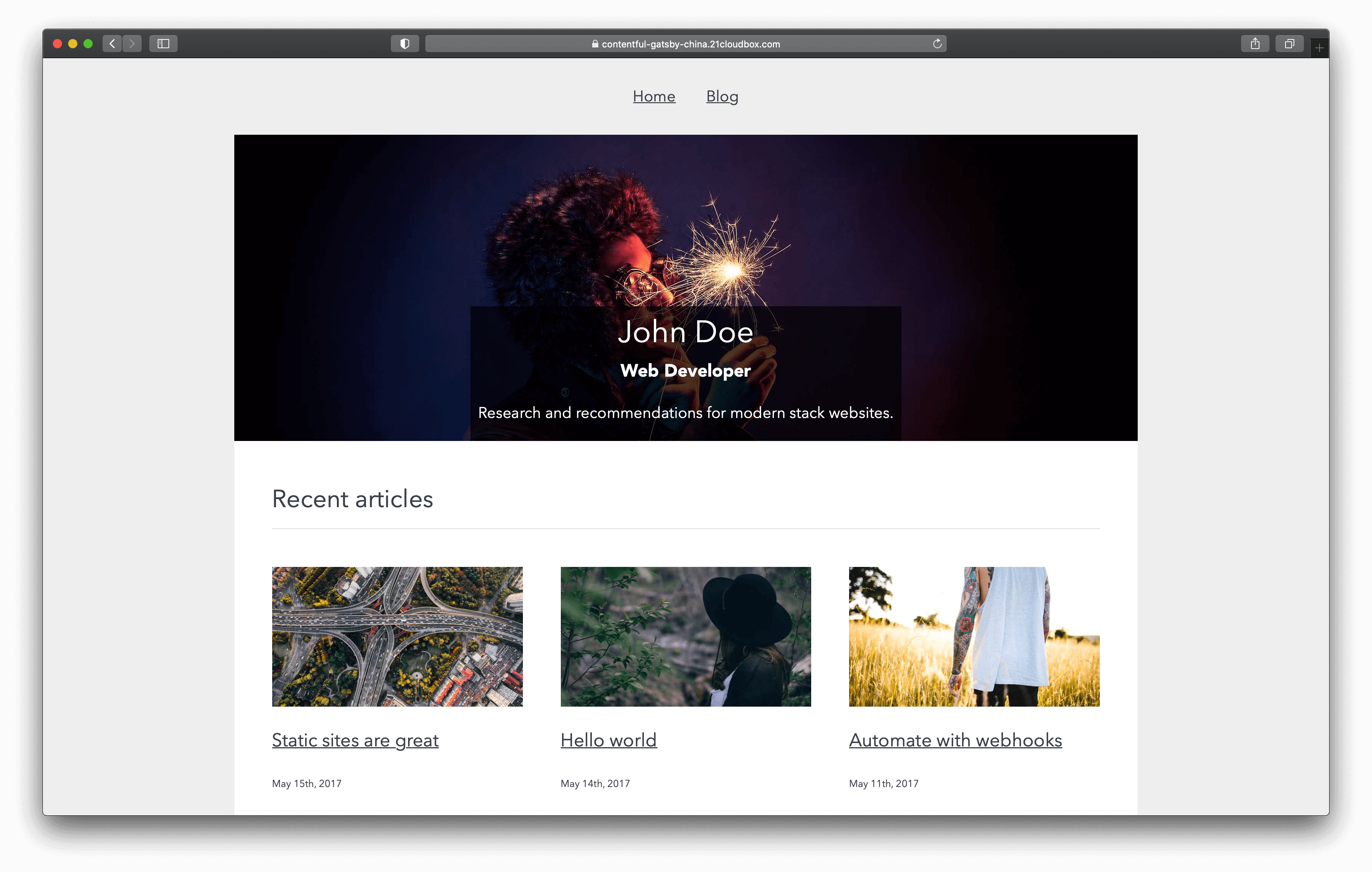 The starter website was provided by Contentful, what we did was that updated the code to support 21YunBox media asset CDN. It will become clear when you show this to your engineer, they can read the code and immediately get what I mean. The code solved the problem we described above.